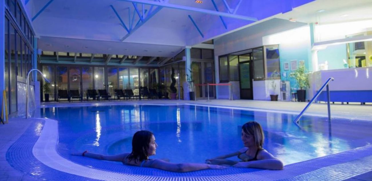 СПА център: Уелнес центърът на хотела предлага вътрешен и външен басейн, сауна, парна баня, джакузи, тепидариум - топло помещение с подово отопление и подгреваеми седалки, солна стая.
