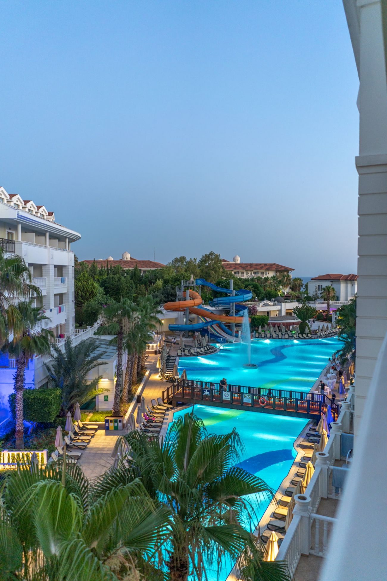 Основен ресторант, 2 а - ла - карт ресторанта, лоби бар, бар на плажа, диско бар, търговски център, доктор, тв салон, закрит басейн, открит басейна, детски басейн, 4 водни пързалки, интернет кафе. За децата: детски басейн, детска площадка, мини-клуб (4-12 год.),тийн клуб (13 - 17г.), детегледачка (платено). Безплатни услуги: турска баня, сауна, парна баня, джакузи, фитнес аеробика, аквааеробика, плажен волейбол, баскетбол, тенис на маса, тенис корт, дартс, мини-голф, боча, баскетбол, анимационна програма, дискотека, интернет в лоби. Платени услуги: масаж, билярд, игрални автомати, уиндсърфинг (с лиценз), интернет кафе, водни спортове, СПА - център.