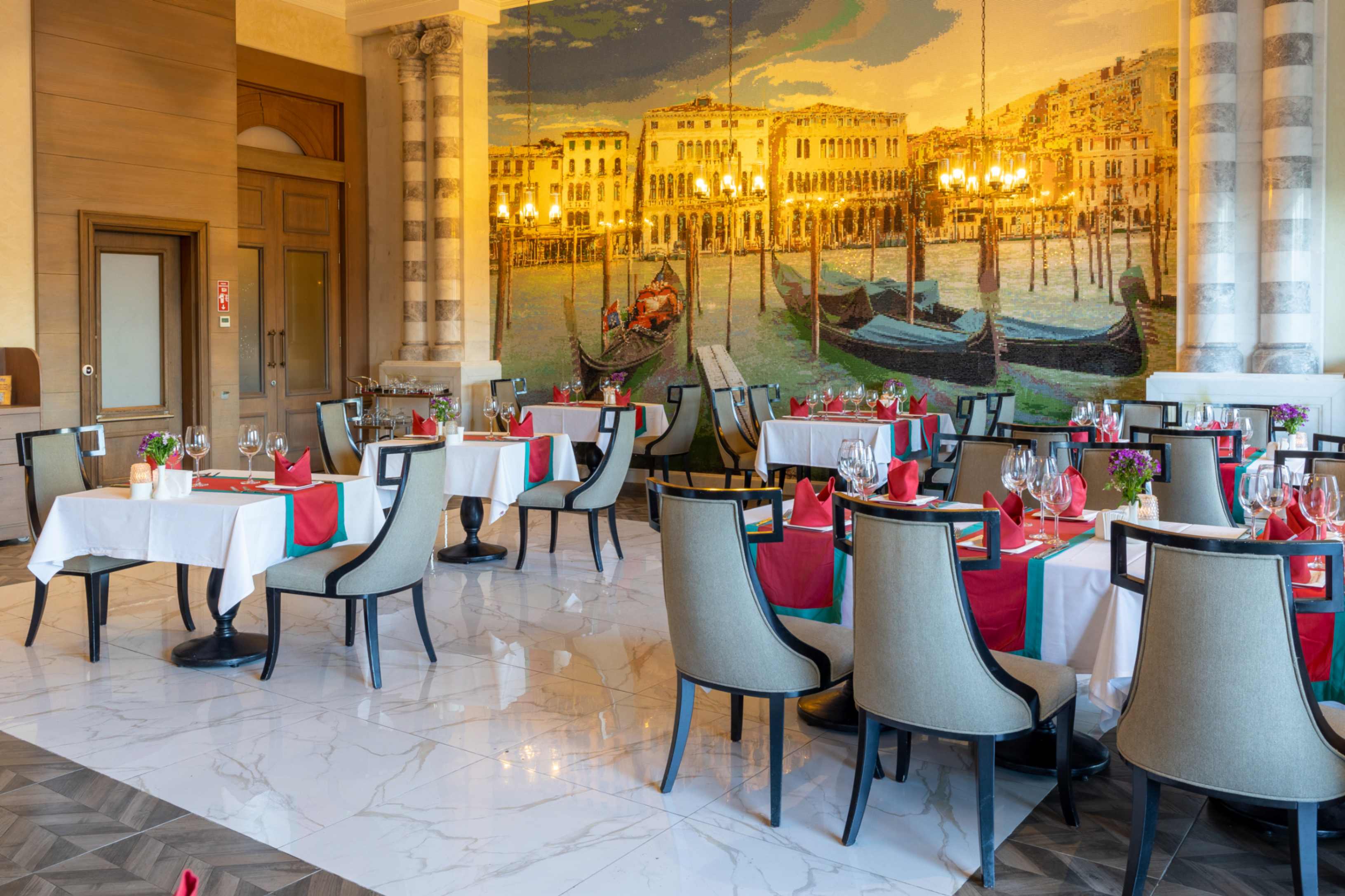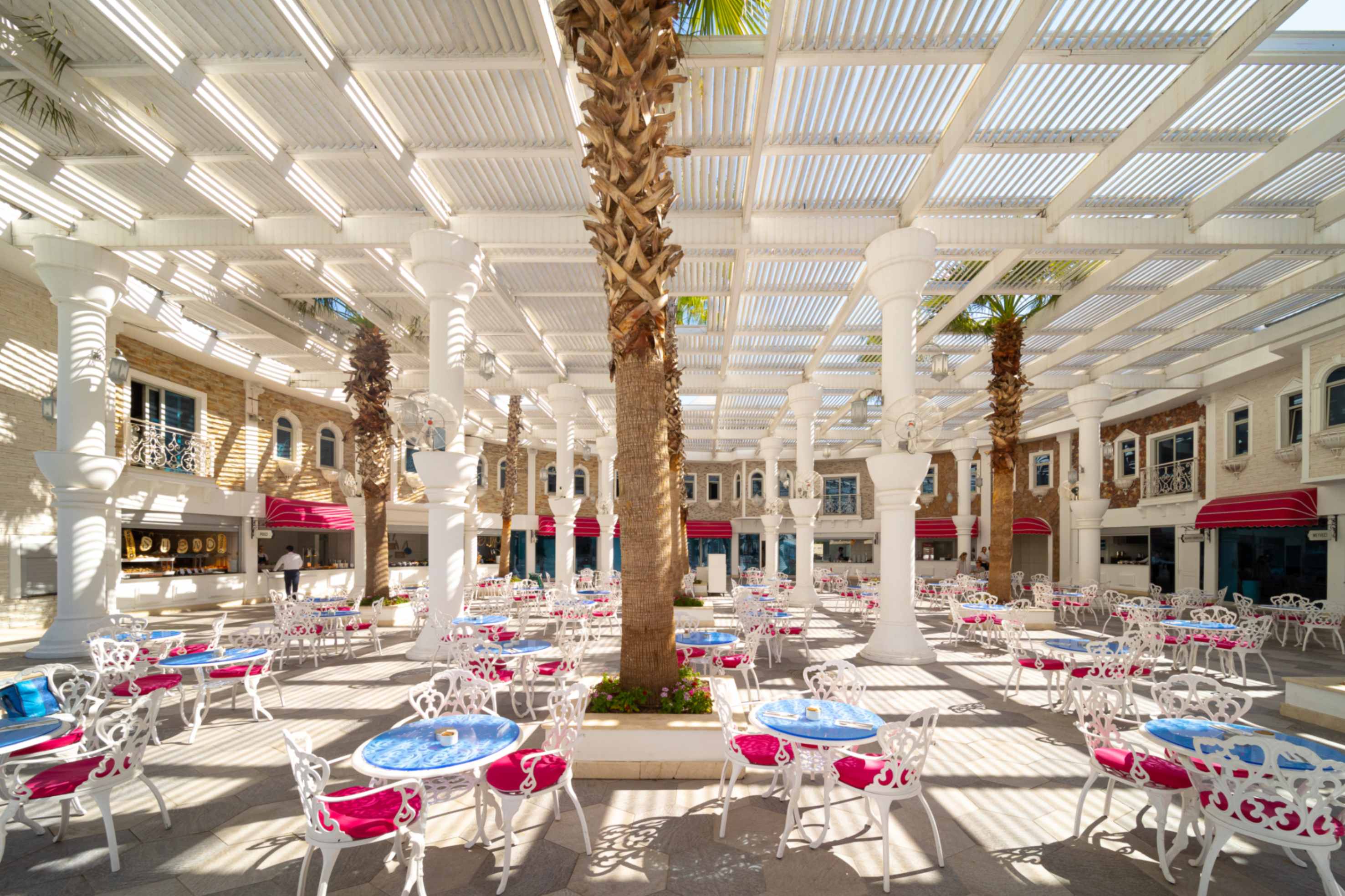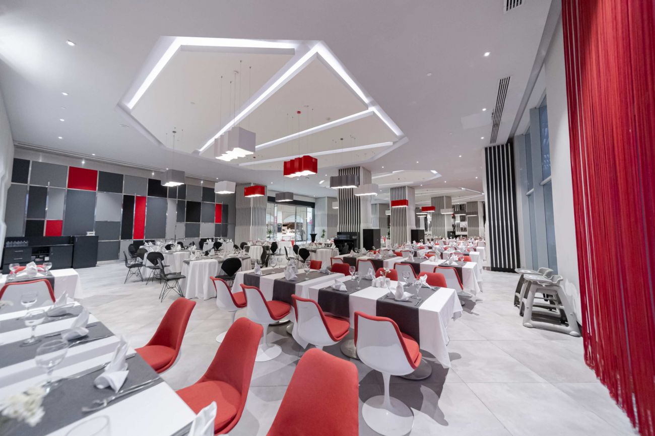 Основен ресторант, 4 а-ла-карт ресторанта с предварителна резервация съгласно концепцията на хотела, 13 бара, 7 басейни, дискотека, паркинг.