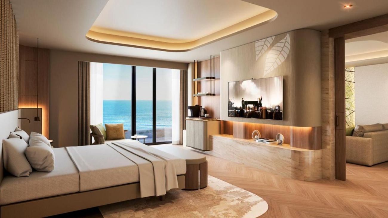 Апартаменти Main Building – Seascape Escape (1 спалня, 1 всекидневна, гледка море – 110 м2), Family Suite (2 спални, изглед градина – 125 м2), Grand Family Suite (2 спални, кухненски бокс, всекидневна, изглед градина – 185 м2), Panoramic Suite (1 спалня, кухненски бокс, всекидневна, изглед море – 215 м2), Horizon Suite (2 спални, кухненски бокс, всекидневна, изглед море – 200 м2), Crown Horizon Suite (3 спални, кухненски бокс, всекидневна, изглед море – 450 м2), Crown Signature Suite (5 спални, кухненски бокс, всекидневна, СПА зона, изглед море – 1700 м2), Amber Lagoon Suite (1 спалня, 1 всекидневна, изглед градина и директен достъп до общ басейн – 90 м2), Amber Lagoon Villa (2 спални, кухненски бокс, всекидневна, изглед градина и директен достъп до общ басейн – 155 м2)