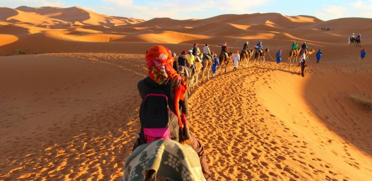 Закуска. Отпътуване към пустинята Сахара (около 320 км). По пътя – преминаване през град Келат Мгоуна, известен със своите красиви розови долини и производство на ароматно розово масло и през каньоните Тодра, където ще се насладим на впечатляващите отвесни скали и панорамни гледки. Посещение на подземните канали Кхетара - древна система за напояване. Свободно време за обяд. Пристигане в Ерфуд, откъдето ще продължим към Сахара с джипове. По желание – разходка с камили в пустинята по залез с доплащане от 35 € / 68,45 лв. на човек. Организира се при минимум 10 участника и се заявява и заплаща в България, а не на място. Настаняване в хотел сред дюните на Сахара. Вечеря. Нощувка.