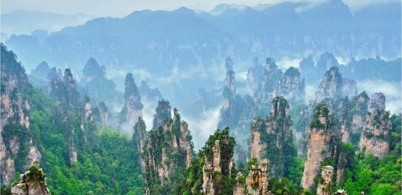 Закуска. Целодневна екскурзия до Национален парк Джандзядзие (ЮНЕСКО) - първият национален парк в Китай, създаден през 1982 г. и прочул се в цял свят с неповторими пейзажи, осеяни с високи скални образувания и бурна растителност. Паркът вдъхновява създателите на знаковия филм Аватар и се превъплъщава в плаващите планини от зрелищната продукция. Качване на най-високия асансьор на открито в света Байлонг, който се издига на цели 326 метра. Тези, които се осмелят да се изкачат, ще бъдат възнаградени с невероятна панорамна гледка към националния парк. Следва посещение на планината Тианзи, формирала се в следствие на милиони години скална ерозия. Древните варовикови върхове, изсечени от природните стихии приличат на колони, които се издигат до небето. Слизане от планината с една от най-дългите въжени линии в света. Обиколката завършва с потока на Златния камшик. Завръщане в хотела. Вечеря. Нощувка