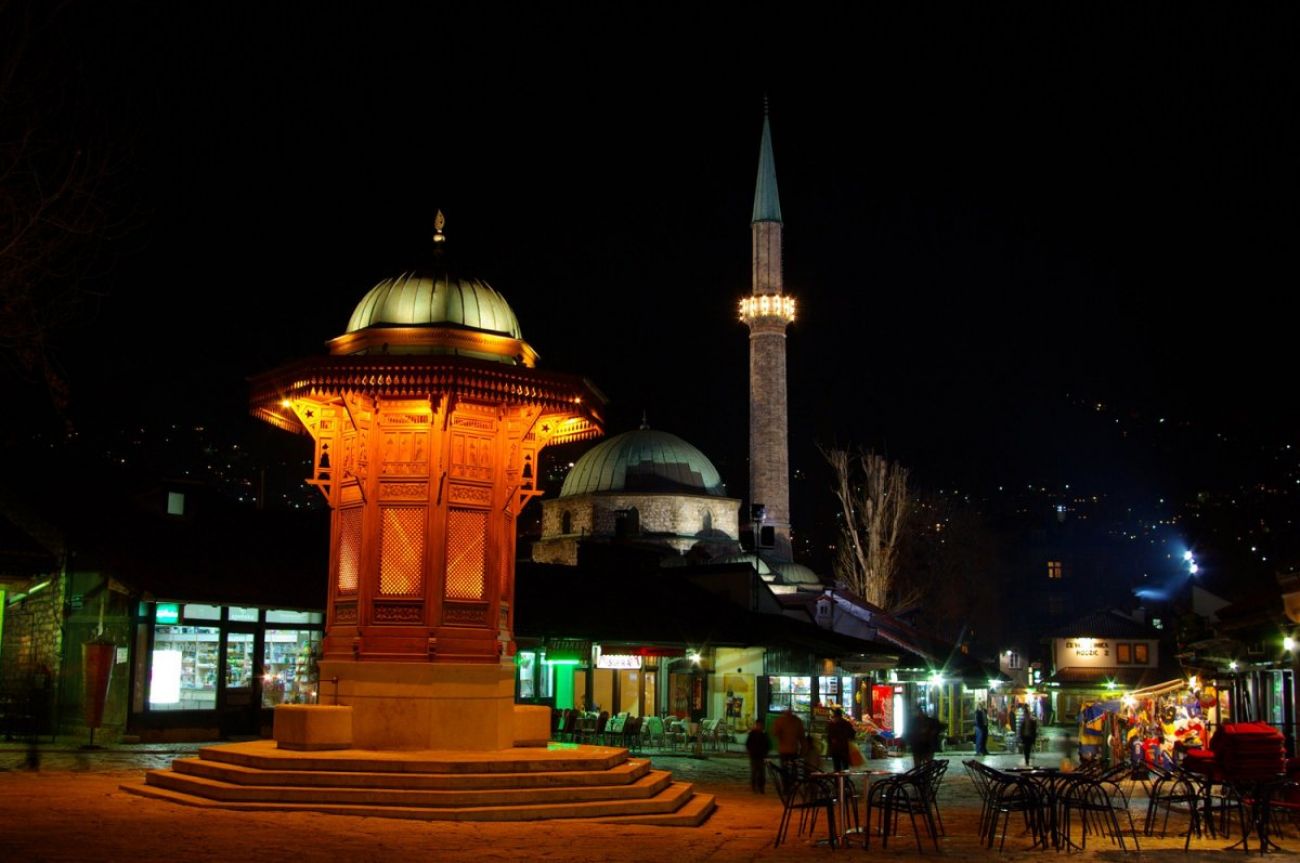 Отпътуване от София в 5.00 ч. от автогара "Сердика" по маршрут Ниш - Чачак - Сараево. Пристигане привечер в Сараево, един от най-бързо развиващите се градове на Балканите. Настаняване. Пешеходна разходка в центъра на града, известен като "Балкански Йерусалим" заради многобройните храмове на различни религии: Башчаршия – сърцето на града с автентична ориенталска атмосфера; джамията на Хюсрев бей; Латинският мост, край който е извършен Сараевският атентат, станал повод за Първата световна война; католическата и православната катедрала. По желание и предварителна заявка - вечеря. Нощувка.
