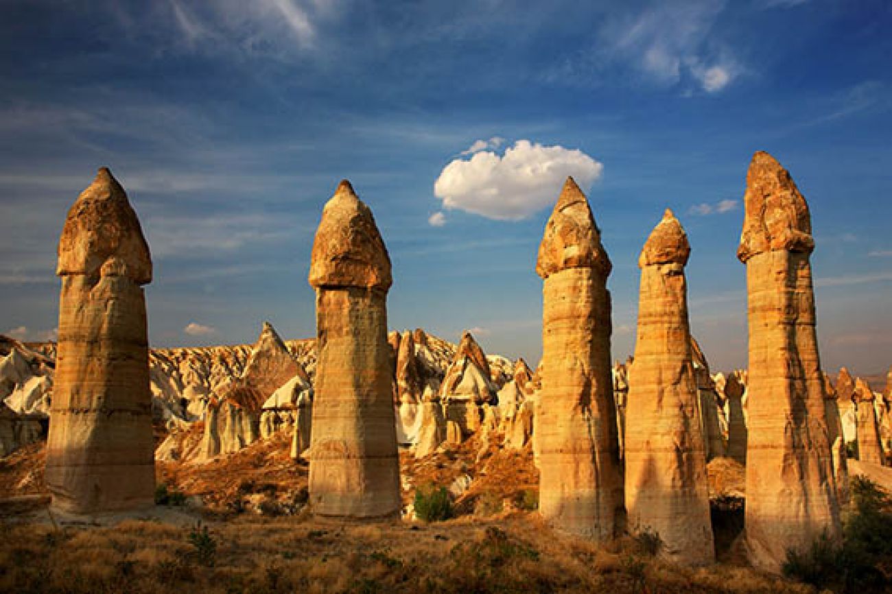 Посещение на национален парк Гьореме* (под егидата на ЮНЕСКО) и пещерните църкви, украсени със стенописи. Въображението ви ще се провокира от мистичните скални стени, пирамиди и конусообразни образувания с вулканичен произход. Посещение на долината Пашабаг, известна оше като долината на приказните комини, където ще видите туфи с характерните базалтови шапки с височина над 10 метра, разположени на групи или изникващи самостоятелно пред погледа. Ще можете да разгледате отвън най-високото вулканично образувание – Учхисар. Същия ден ще посетите и традиционна тъкачна работилница, където ще се запознаете с цялостния производствен процес от извличането на суровината – коприна, памук или вълна – до готовия изтъкан продукт. Програмата ще завърши с посещение на гр. Аванос, в който още се практикува грънчарството, спазвайки традициите от древността. За характерните червени грънчарски изделия се използва пръст от наносите на Червената река.
