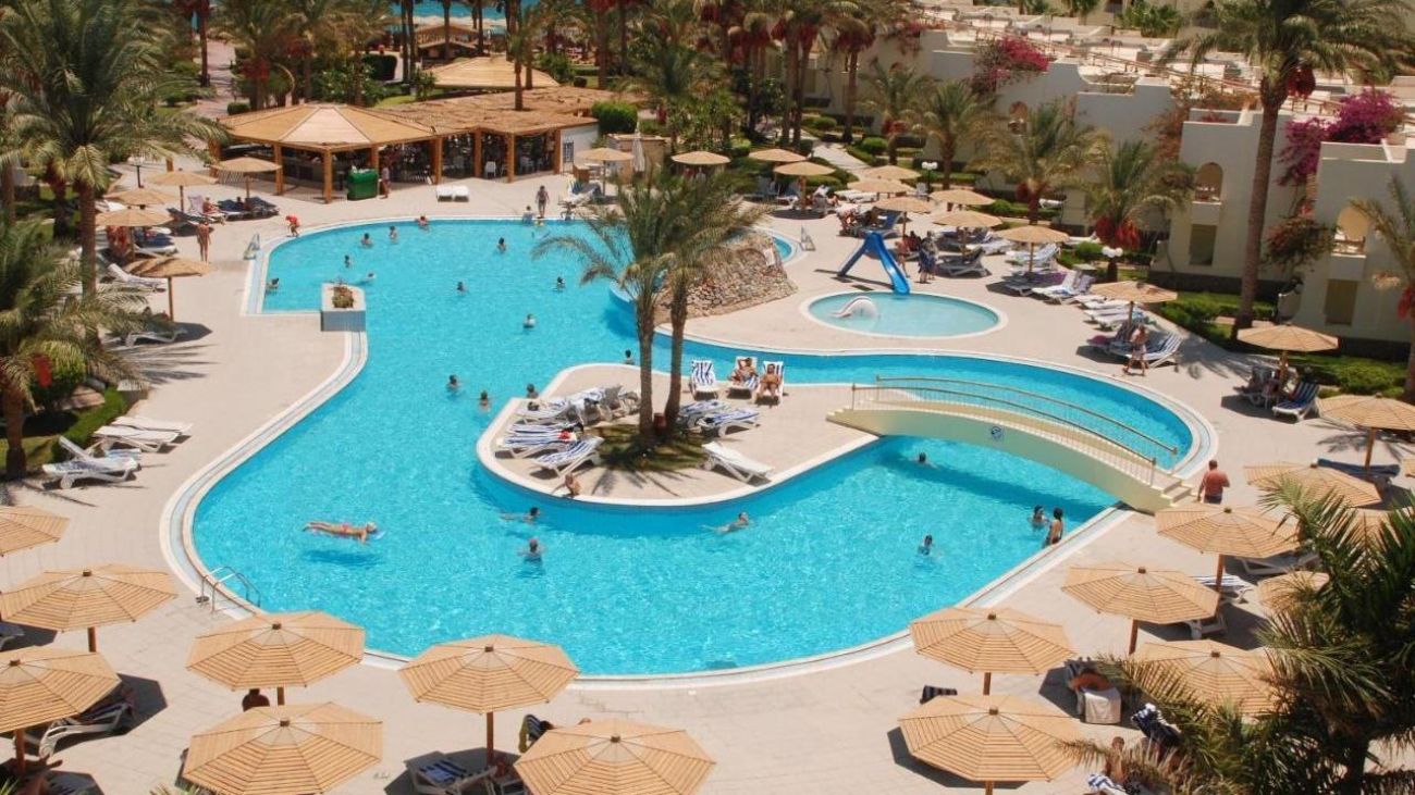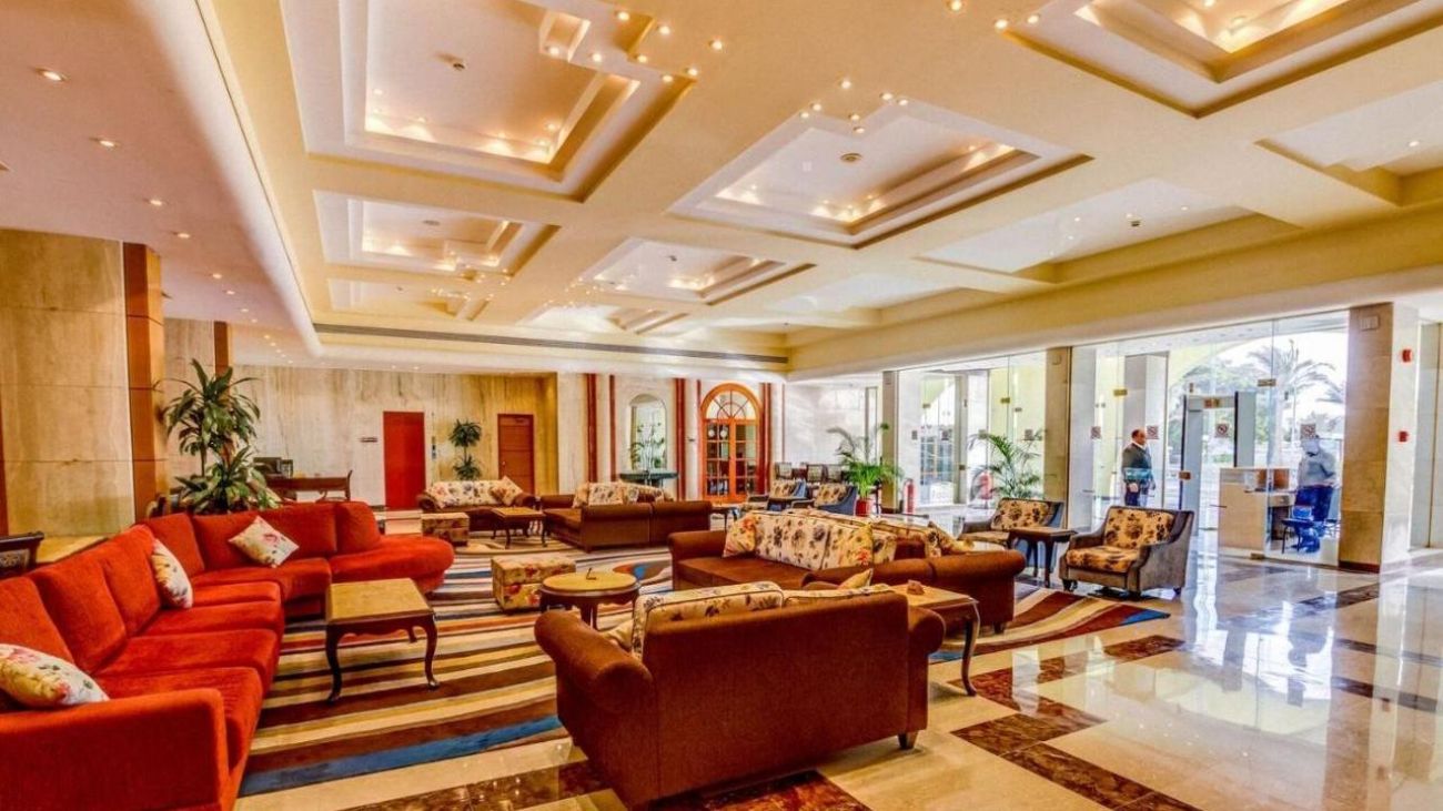 Palm Beach Resort 4* е обзаведен в модерен стил, а обстановката и атмосферата са традиционни за Египет. Хотелът разполага с прекрасни гледки към Червено море, с 2 басейна, собствен пясъчен плаж и клуб по гмуркане. Гостите на хотела имат на разположение още: ресторант с международна кухня, бар с напитки и леки закуски, релаксиращи масажи, сауна и фитнес, екип от аниматори, организиращи различни занимания и игри през целия ден. Центърът по гмуркане - The Caves, предлага различен тип водни спортове, като гмуркане, шнорхелинг и уиндсърф.
