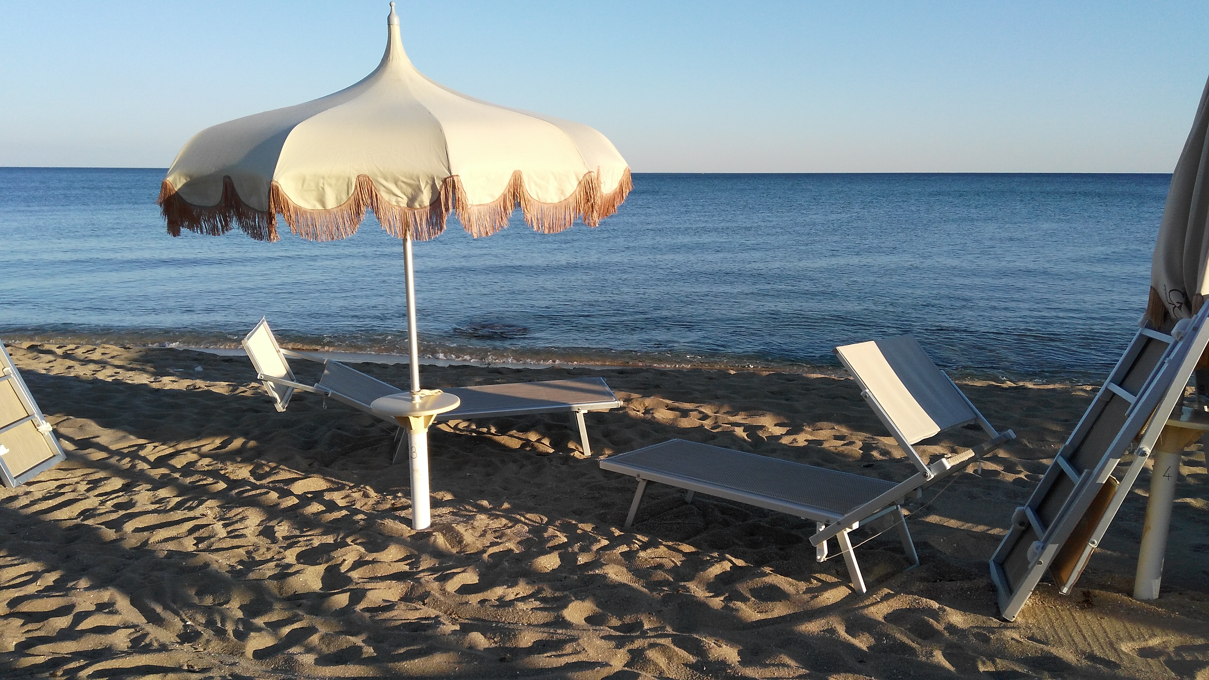 Собственият пясъчен плаж на хотела се намира само на около 600 м разстояние през спокойната и добре озеленена вилна зона на курорта. До него се стига с безплатен транспорт или пеш за около 15-20 минути по алеите покрай кокетни ваканционни вили. Плажът е заобиколен от борова гора и е оборудван с безплатни за гостите чадъри и шезлонги – 1 чадър и 2 шезлонга на стая до изчерпване. Сгушеният в прохладна зеленина бар на плажа предлага освежаващи и разхладителни напитки, както и леки закуски. От хотела могат да се наемат плажни кърпи на цена около 2-3 EUR за брой и за всяка смяна.