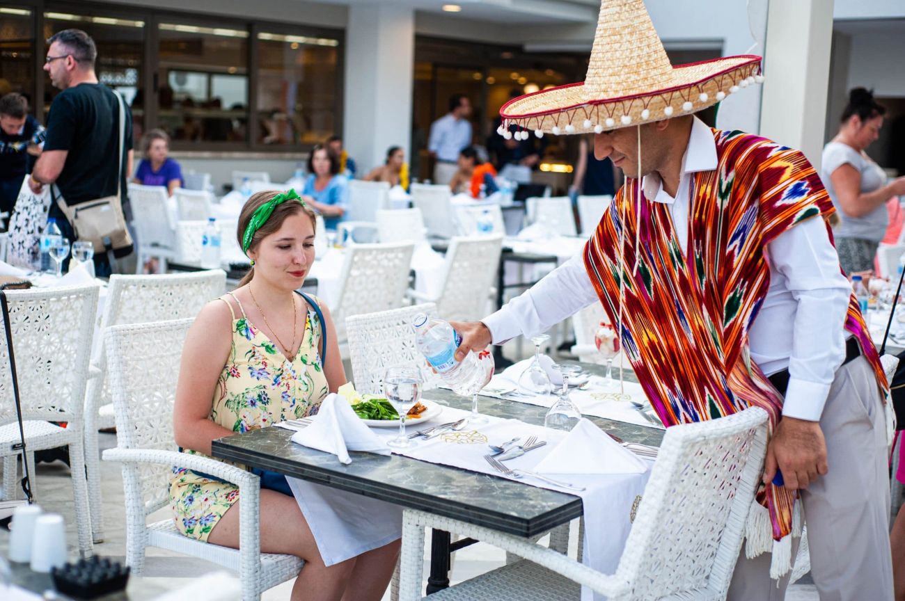 2 основни ресторанта (вътрешен с капацитет 100 места, външен с капацитет 400 места), а-ла-карт ресторант, 4 бара - LA ESQUINA CAFE, POOL BAR, TERRACE BAR, SNACK BAR, 2 открити басейна (880 cm. x 1330 cm. и 800 cm. x 1800 cm.), 1 закрит басейн, СПА център. За децата: Детски басейн. Безплатни услуги: Сауна, турска баня, фитнес, дартс, табла, жива музика, анимация, интернет(в лоби). Платени услуги: Масаж, пилинг, джакузи, парна баня, водни спортове, детегледачка, пералня, химическо чистене, лекар, водни спортове Плаж: Собствен, пясъчен – чадъри и шезлонги на плажа и при басейна – безплатно, плажни кърпи – безплатно, при смяна – срещу заплащане.