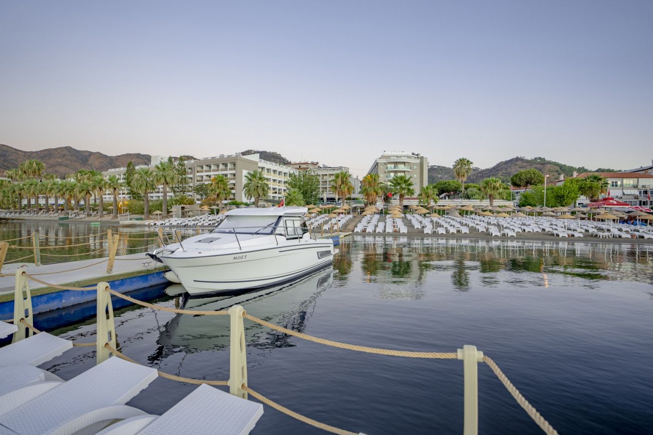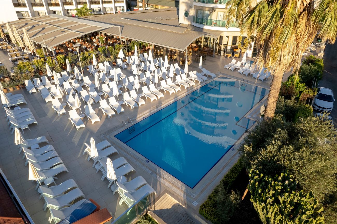 Хотелът се намира на 120 км. от летище Милас, на 99км от летище Даламан, на 3 км. от центъра на Мармарис, на брега на морето. Построен през 1995 г. (блок „А“) и 1998 г. (блок „Б“) с обща площ от 9 000 м2, последно реновиран през 2009 г. (блок „А“) и 2013 г. (блок „Б“).