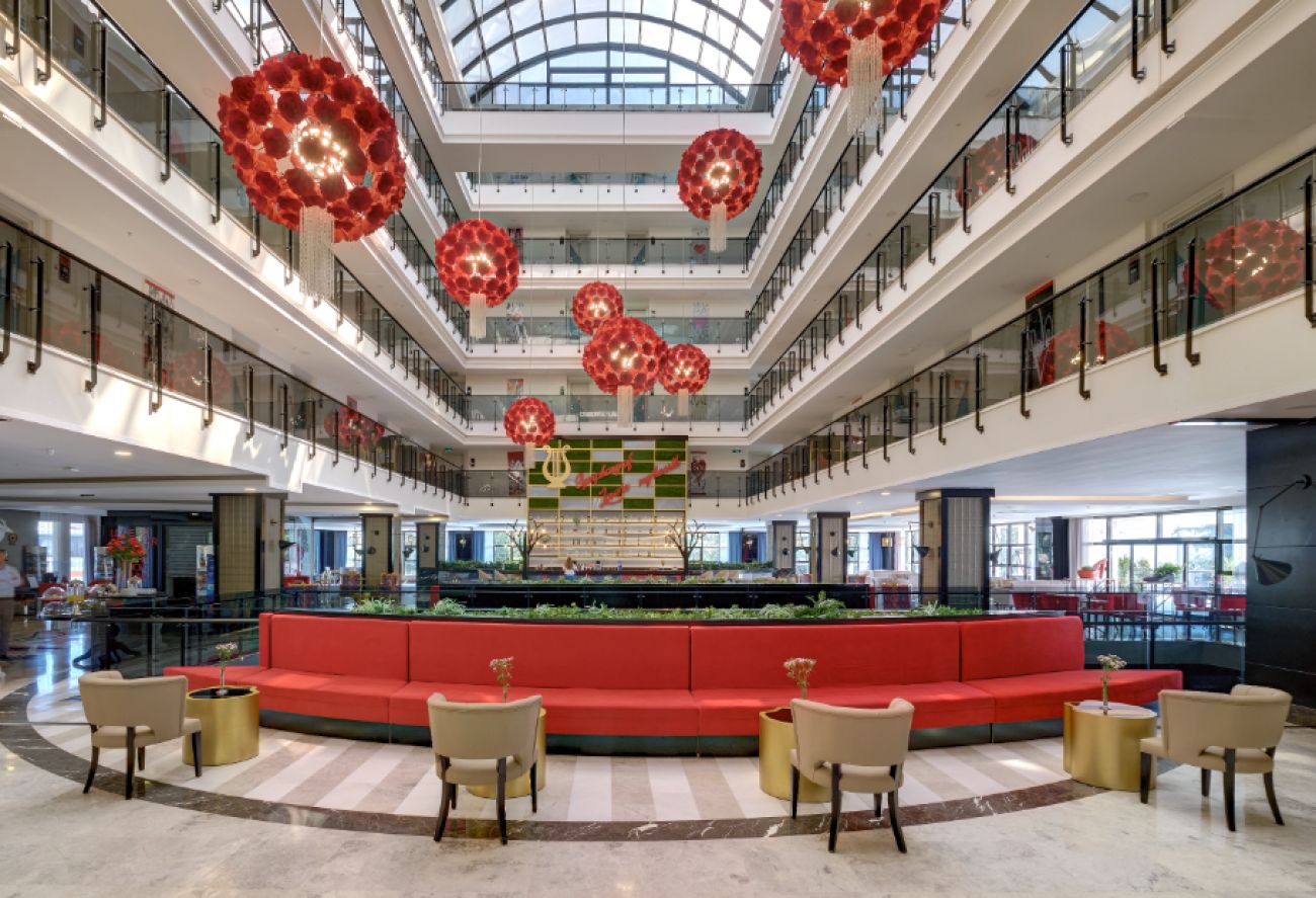 Основен ресторант, 3 а- ла - карт ресторанта (турски, азиатски, италиански - с предварителна резервация, веднъж безплатно за 7 нощувки), 5 бара, 2 открити и един закрит басейн, дискотека, сладкарница, Безплатни услуги: Сауна, турска баня, парна баня, фитнес,аеробика, дартс, плажен волейбол, пинг понг, анимация. Платени услуги: Масаж, СПА център, фризьорски и козметичен салон, ютия, телефон, турско кафе, магазини, рент - а кар.