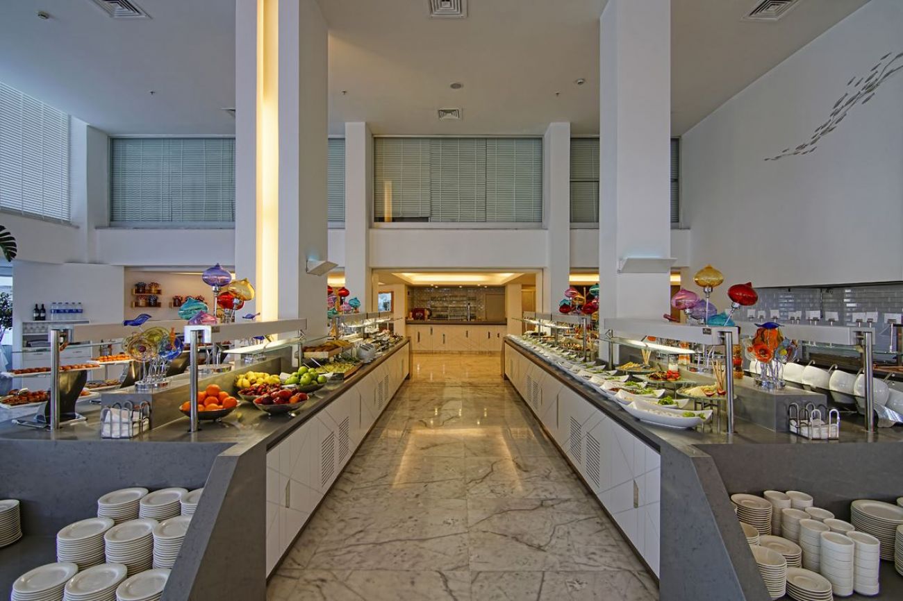 Основен ресторант, 2 а-ла-карт ресторанта (рибен и стек- срещу заплащане/ с предварителна резервация, съгласно концепцията на хотела/ 1 безплатно посещение на рибния ресторант при минимум 5 нощувки), сладкарница, 4 бара (един от които работи 24 часа), Starbucks Corner, Nespresso Corner, външен и вътрешен басейн, детски аква парк, СПА център, фитнес, лека анимация, тенис корт, конферентни зали, интернет, паркинг.