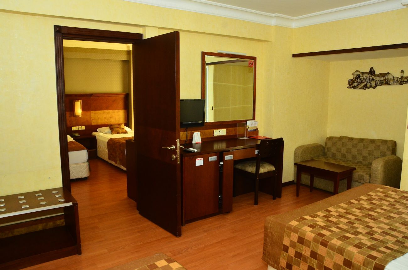 Хотелът разполага с общо 246 стаи, от които 88 стандартни с изглед градина (24 м²), 89 стандартни с изглед море (24 м²), 17 фамилни стаи (свързани стаи - 48 м²), 22 супериор стаи (26 м²), 8 промо стаи (20 м²) и 2 суита. Всички стаи са оборудвани с климатик, телевизор, телефон, баня с душ/вана, сешоар, мини бар (платен), сейф (безплатен). Почистване на стаите - всеки ден, смяна на спалното бельо и кърпите - 2 пъти в седмицата.