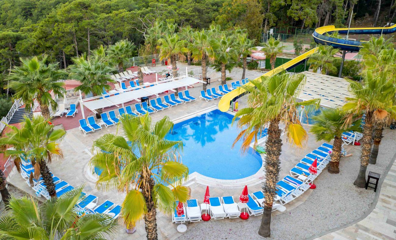 Хотелът се намира на 60 км от летище Даламан, на 45 км от Саклъкент и Далян, на 5 км от центъра на Фетие, на 5 км от световноизвестния плаж Олудениз. Построен е на 400 м надморска височина върху обща площ от 16 000 м2.