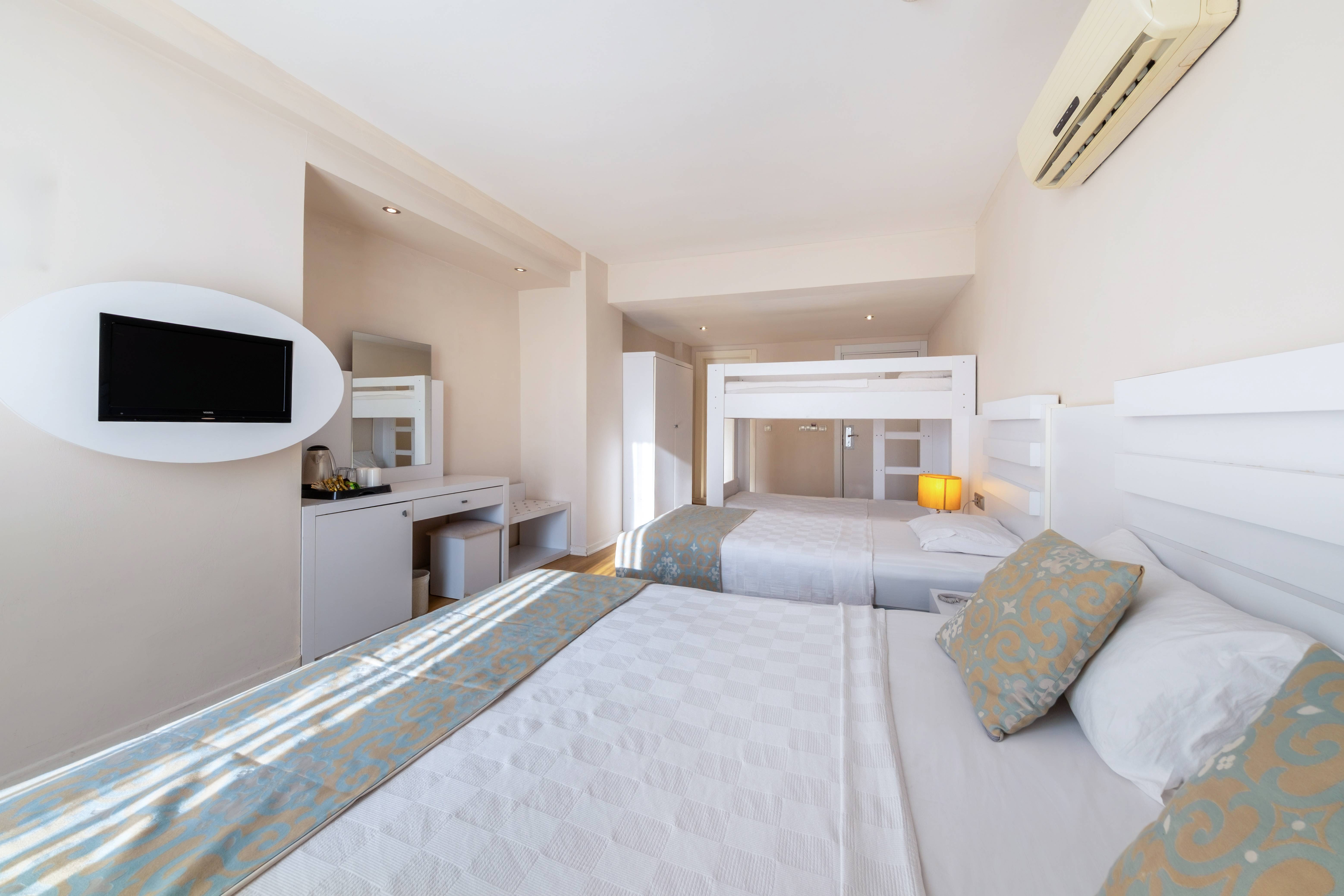 Разполага с общо 130 стаи от които: 24 Economy room (мансардни) стаи (18m2), 46 Standard room (25m2) оборудвана с 1 двойно легло или 2 единични легла ,баня и балкон., 18 Standard Swim up стаи (25m2) оборудван с 1 двойно легло или 2 единични легла и баня , разполага с тераса с шезлонг., 8 Standard Family room (30m2) оборудванa с 1 голямо легло, 1 малко легло, двуетажно легло, балкон или тераса , 18 Bungalow Swim up (25m2) луксозен изцяло дървен дизайн, на входа на хотелската част, с директен достъп до басейна пред хотела), 8 Bungalow Deluxe Suite room (30m2) с тераса за слънчеви бани, 8 Bungalow Family room (35m2) с дървен дизайн, разположени в близост до основния басейн, разполагат с 2 спални и 2 бани с тоалетни
