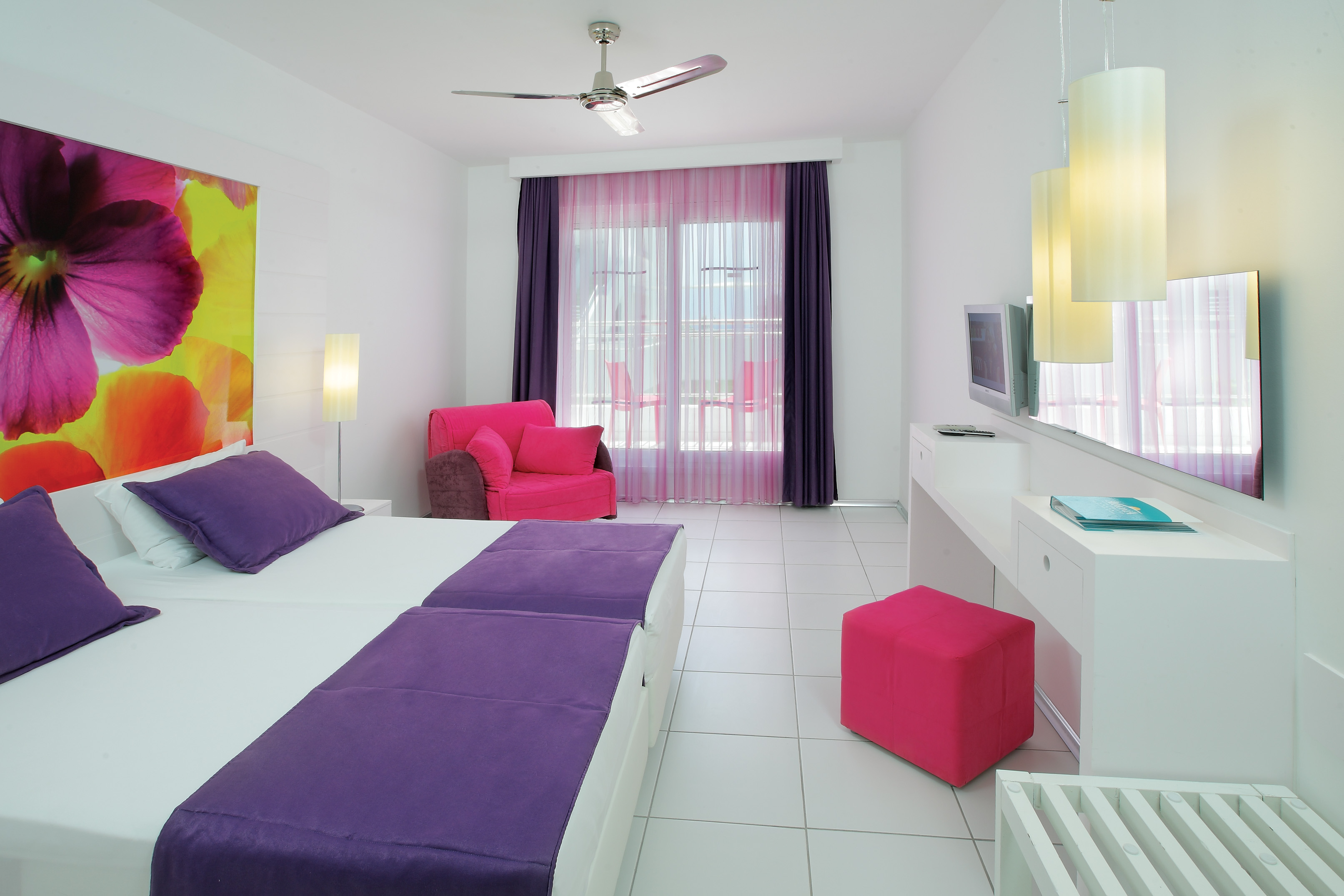 Хотелът разполага с общо 381 стаи, разположени в 3-етажни сгради. 302 STANDARD ROOM (разпределени в къщички - 20 m2), 48 Large Room (стая със спалня и двуетажно легло - 22m²).