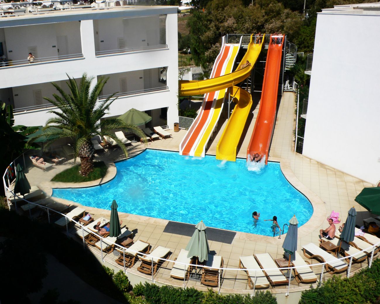 За децата: 2 детски басейна, 2 водни пързалки, детска площадка, мини клуб (4-12г), мини диско, детска анимация.