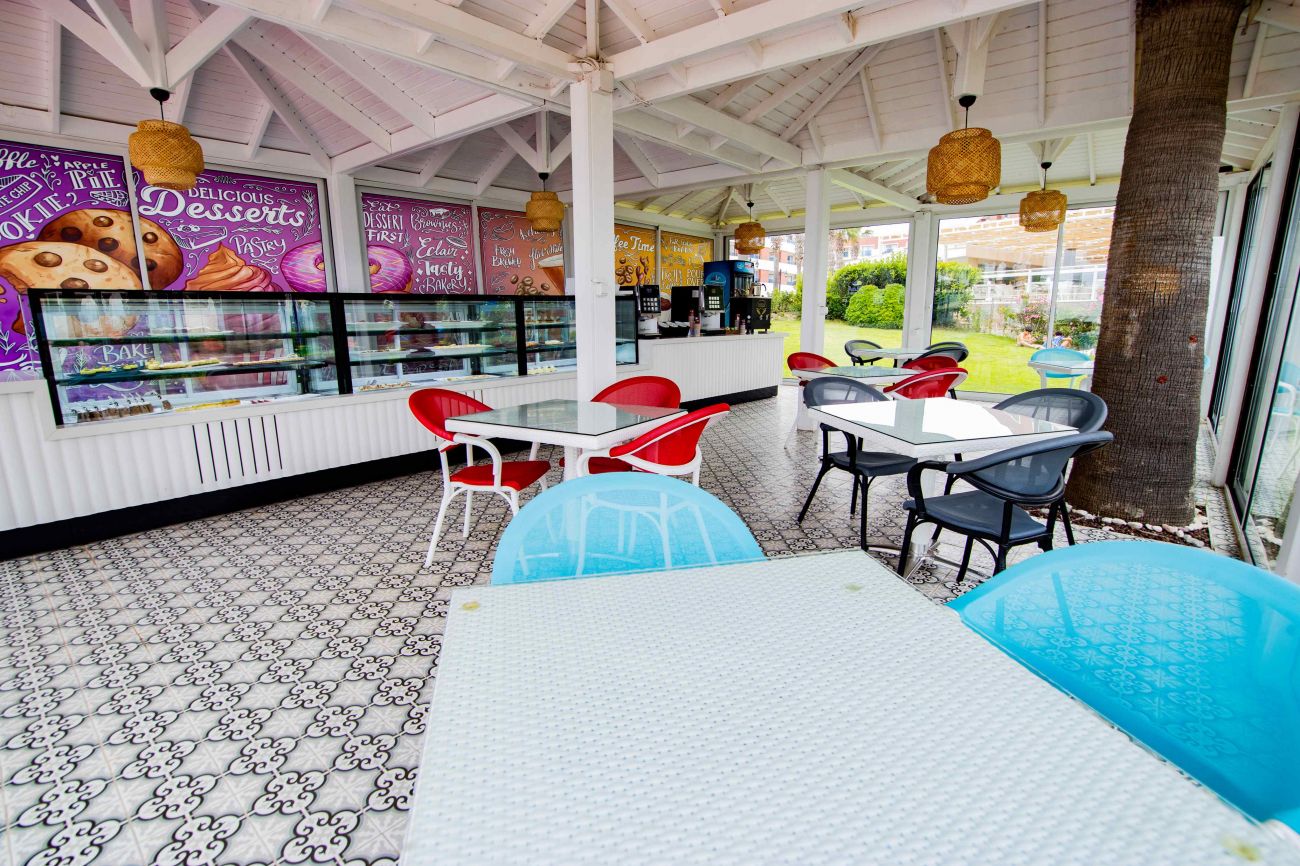 Oсновен ресторант (предлага и диетично, вегетарианско и детско бюфе), 2 а-ла-карт ресторанта - турски и рибен (едно безплатно посещение при минимум 4 нощувки, а-ла-карт ресторантите работят 6 дни в седмицата), 5 бара - Lobby, Snack Bar (денонощен), Boutique Bar и Baby Bar (денонощен, мляко за бебета), Service Bar, сладкарница, дискотека, 4 външни и 2 вътрешни басейни (включително и детски), СПА център, салон за красота, паркинг, 24-часова рецепция.