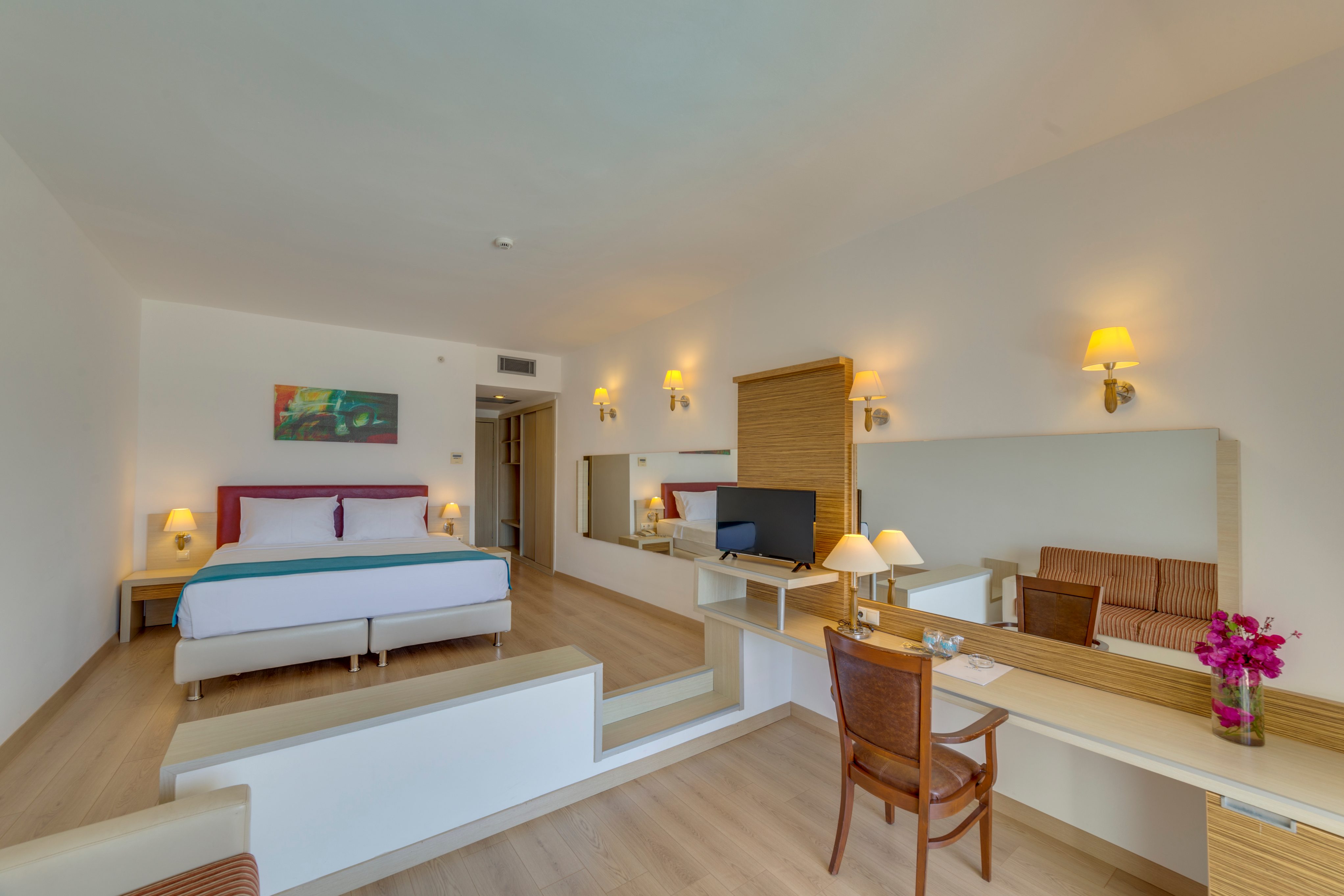 Всички стаи са оборудвани с: климатик, телевизор, телефон, мини бар (безплатен с включена вода и безалкохолни напитки, зареден само при настаняване), сет за чай и кафе, сейф (безплатно), баня с душ, сешоар, WI-FI (безплатен).