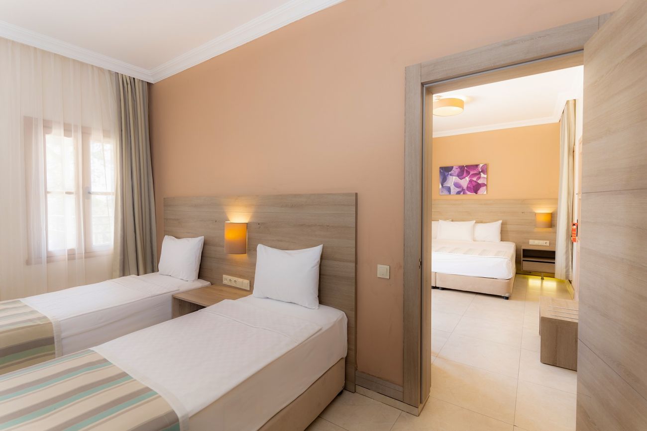 Хотелът разполага с общо 288 стаи, от които 101 разположени в 3-етажна основна сграда Main building и 187 Club Room в къщички. Main Building Standard (стаи в основната сграда – 21 m²), Club Room (стаи в отделни къщички – 20 m²), Family Junior Club Room (две отделни стаи с двуетажно легло – 28 m²), Family club room (две отделни стаи с тераса или балкон – 40 m²), Deluxe family club room (две стаи с тераса или балкон – 40 m²).