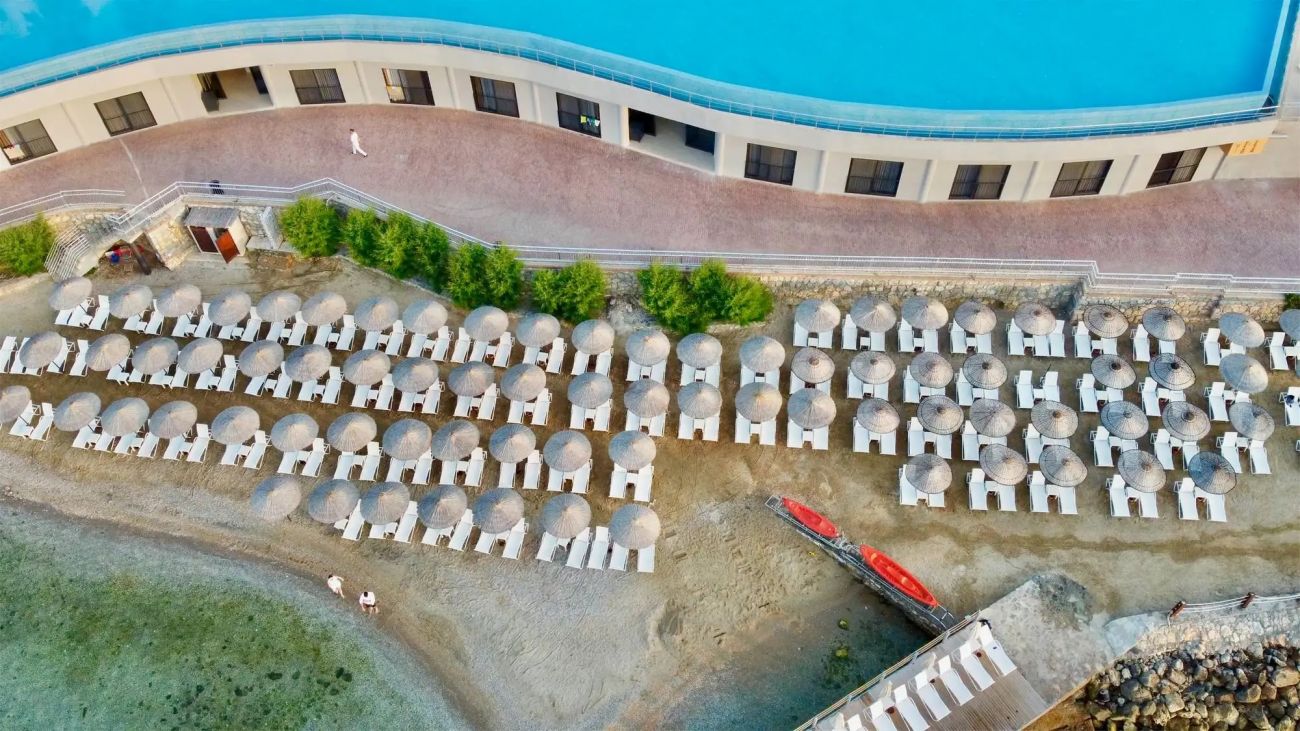 Хотелът се намира на 23 км от летище Милас и на 10 км от центъра на град Бодрум, разположен в района на Торба. Последно реновиран през 2024г.