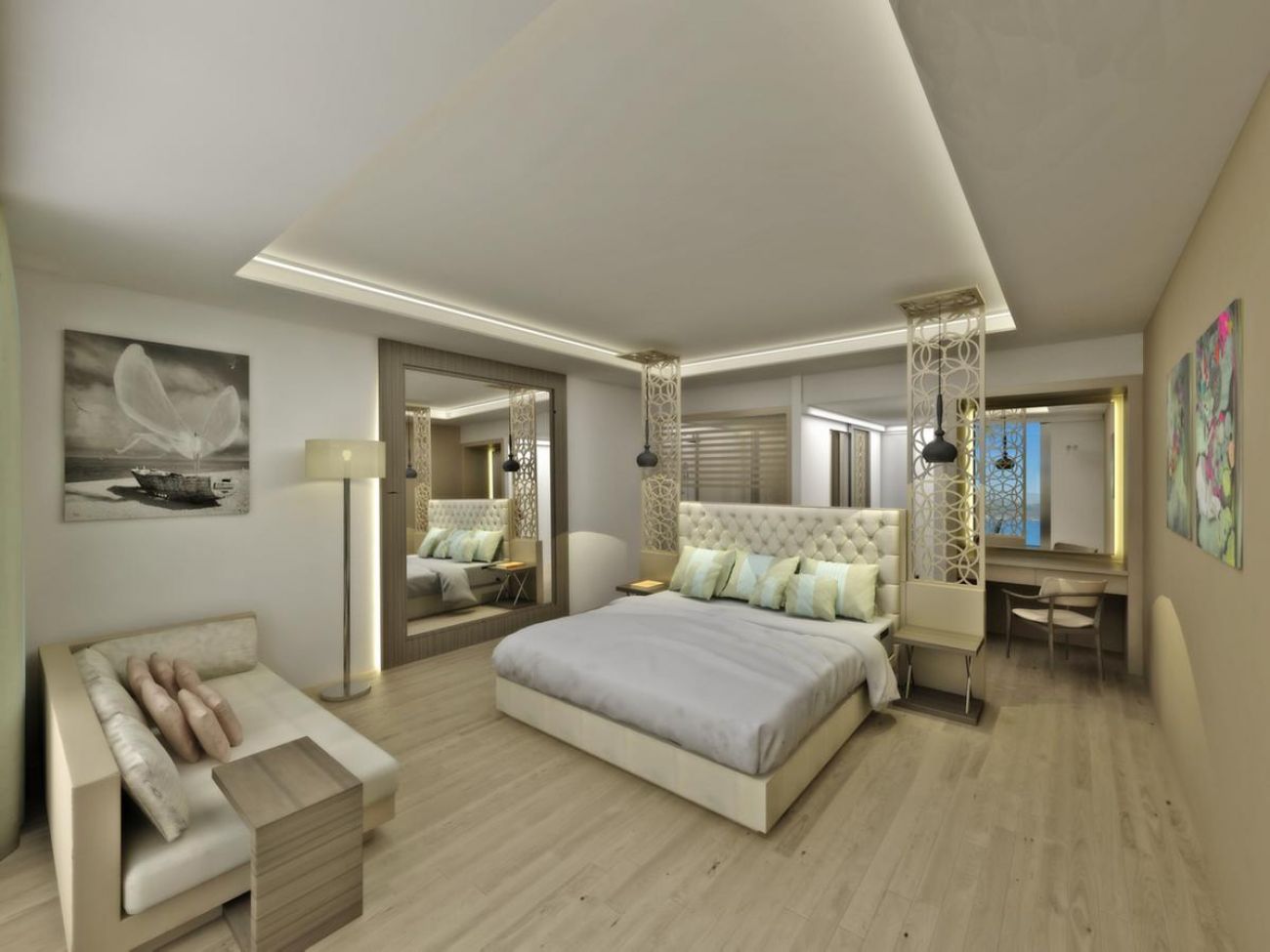 Хотелът се състои от 341 стаи: 217 клубни стаи (от които 81 с гледка градина и 136 гледка море), 58 клубни семейни стаи с гледка градина, 28 делукс семейни стаи и 38 делукс стаи. Всички стаи са оборудвани с: баня с душ, сешоар, климатик, телевизор, телефон, сет за кафе и чай (безплатен), минибар (безплатен, зарежда се веднъж при пристигане с безалкохолни напитки и вода, през останалите дни - веднъж на ден вода и газирана вода), сейф (платено), смяна на спалното бельо – 3 пъти седмично.
