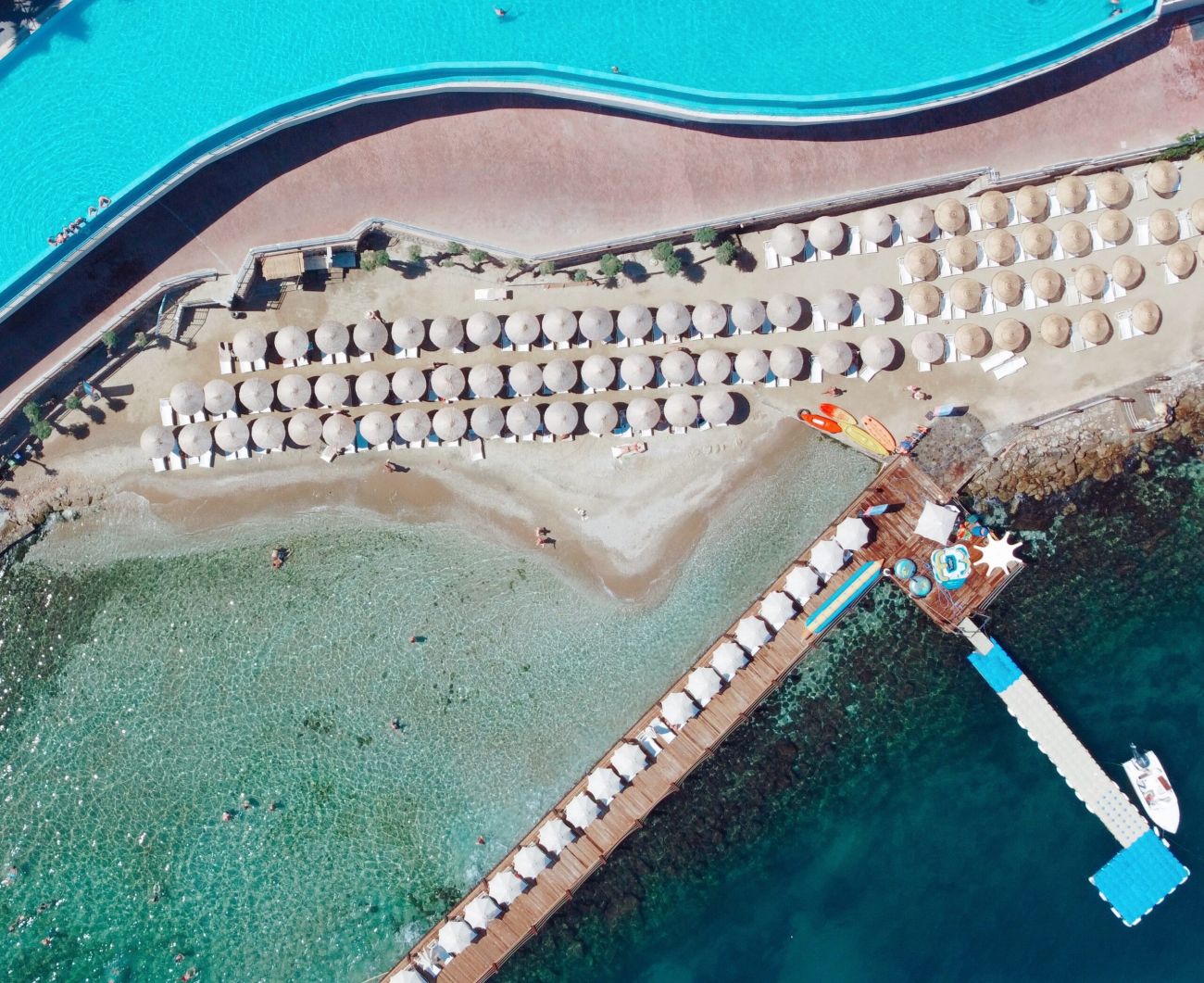 Собствен, пясъчен, платформа. Чадъри, шезлонги и плажни кърпи на плажа и при басейна – безплатно.