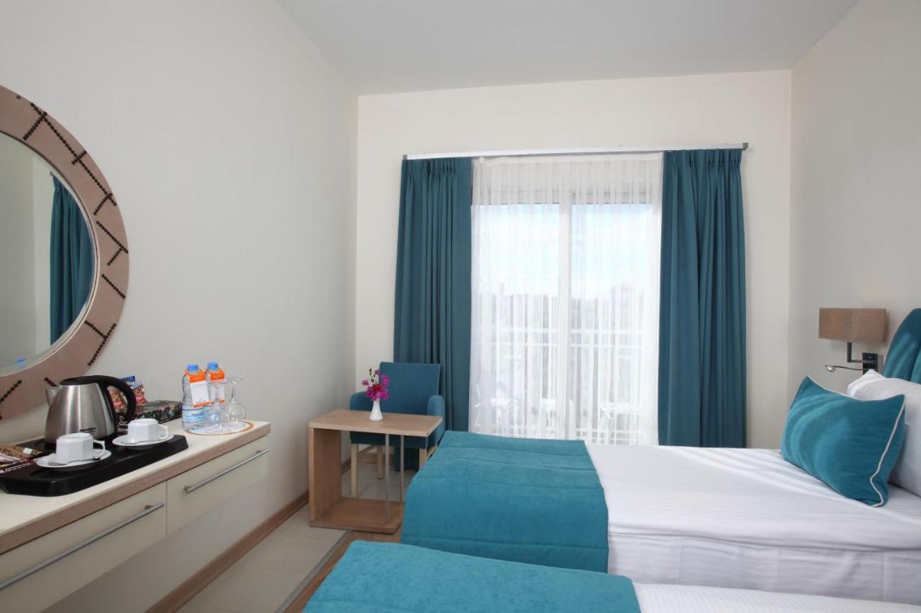 Хотелът разполага с общо 181 стаи, разположени в 3-етажни сгради. Standard room (18 m²), Family room (22 m²).