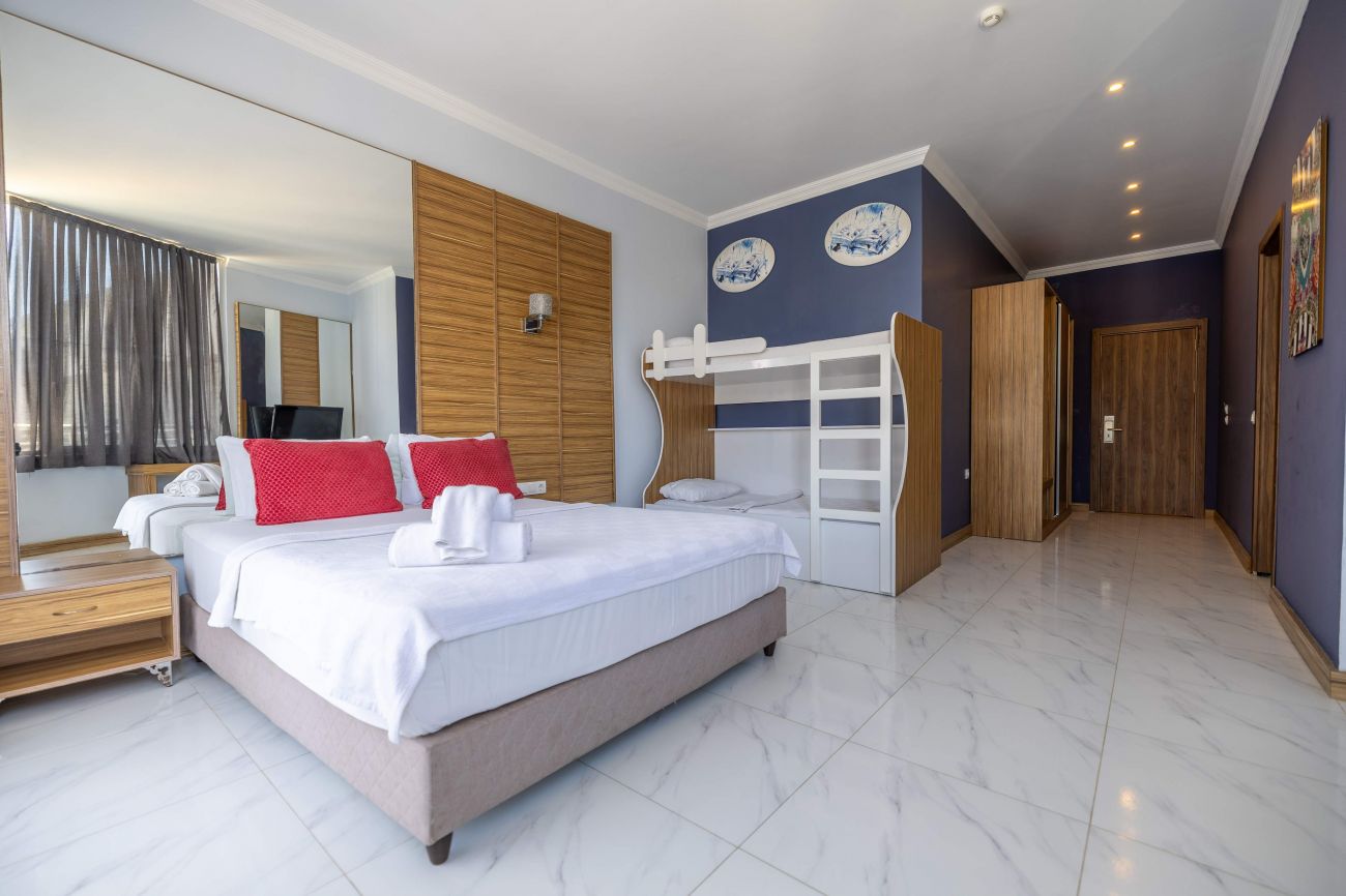Standard land view (изглед суша, френски балкон - 26 м²), Standard room pool view (изглед басейн, френски балкон - 26 м²), Family room (изглед басейн, 1 спалня, всекидневна, балкон - 50 м²), Swim up family room (с директен достъп до общ басейн, 1 спалня, всекидневна, балкон - 50 м²), Family suite (изглед басейн, 2 спални, всекидневна, балкон - 60 м²), Family suite swim up (с директен достъп до общ басейн, 2 спални, всекидневна - 60 м²).