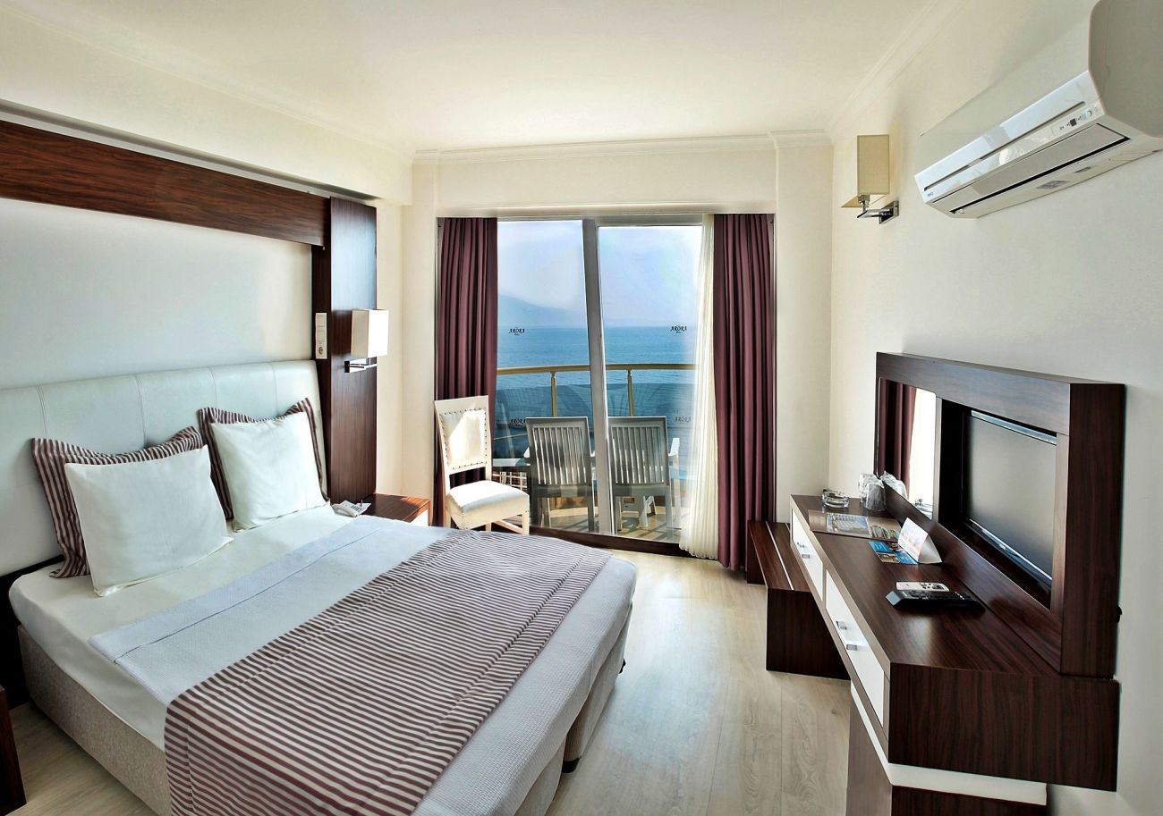 Хотелът разполага 137 стаи, от които 127 стандартни (103 с изглед море и 24 с изглед градина, 20-24 м²), 8 дуплекс фамилни (2 единични легла на долния етаж и спалня на горния етаж, без свързваща врата, 25-26 м²), 1 суит и 1 disabled (пригоденa за хора с ограничена подвижност - 30 м²). Всички стаи са оборудвани с климатик, телевизор, телефон, баня с душ/вана, сешоар, минибар, сейф (безплатен), балкон.