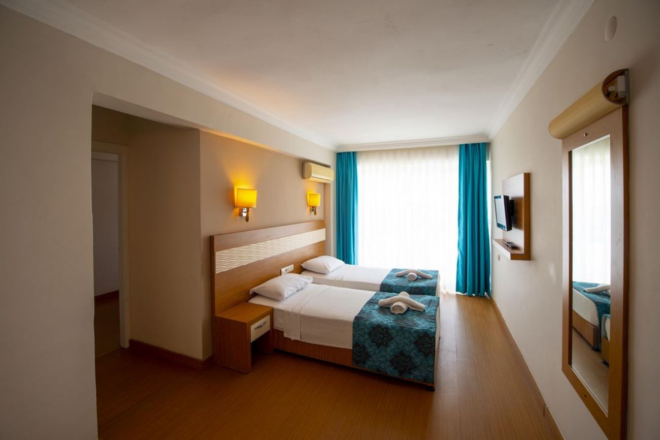 Хотелът разполага с 104 стаи, от които 49 стандартни и 55 фамилни стаи (2 стаи със свързваща врата). Всички стаи са оборудвани с климатик, телевизор, телефон, баня с душ, сешоар, минибар (празен), балкон или тераса. Почистване на стаите – всеки ден, смяна на бельото – 2 пъти в седмицата.