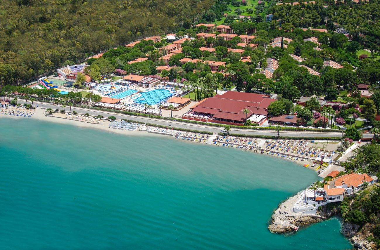Намира се на 70 км от летище Измир, на 130 км от летище Милас, на 4 км от центъра на Кушадасъ, на 50 м от брега на морето. Построен през 1998 г., поетапно разширяван в периода 2004-2008 г., с обща площ 170 000 м², където тюркоазено синьото на Егейско море се слива с огромна гора от борови дървета с красиви цветя. BUNGALOW GARDEN ROOMS са реновирани през 2014 г., SUPERIOR ROOMS са реновирани през 2021 г. , FAMILY ROOMS през 2022 г.