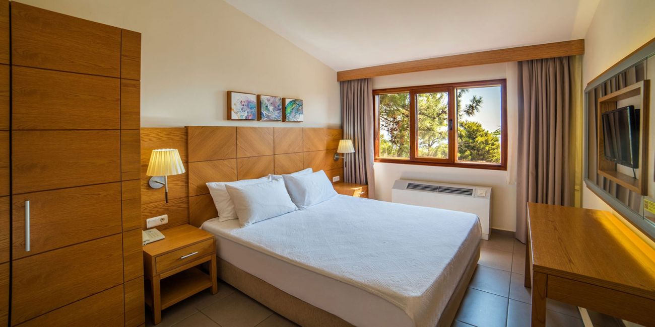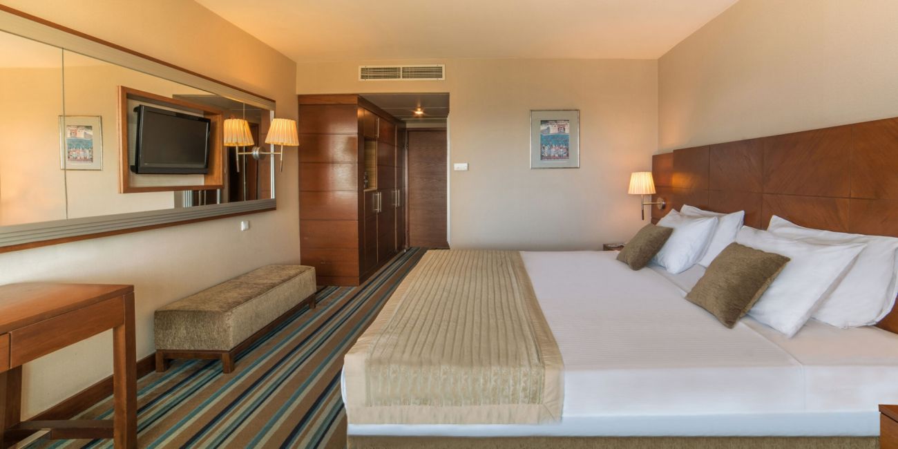 Хотелска част (девететажна сграда) с общо 320 стаи, от които: стандартни стаи с изглед градина (25 м²), с частичен изглед море (30 м²) и с изглед море (25 м²), супериор стаи с изглед море (40 м²), джуниър стаи с изглед градина (1 спалня - 31 м²), фамилни стаи с изглед градина (2 спални, 1 баня - 43 м²), стандарт суит (1 спалня, всекидневна, 1 баня - 50 м²), супериор суит (2 спални, всекидневна с кухненски бокс, 3 бани -119 м²), бизнес суит (1 спалня, всекидневна - 166 м²), стандарт суит с тераса (1 спалня, 1 баня, тераса с джакузи - 40 м²), стандарт суит с градина и тераса (1 спалня, всекидневна, 2 бани, градина с джакузи - 54 м²), супериор суит с басейн (2 спални, всекидневна, 2 бани, тераса с джакузи и басейн - 147 м²),