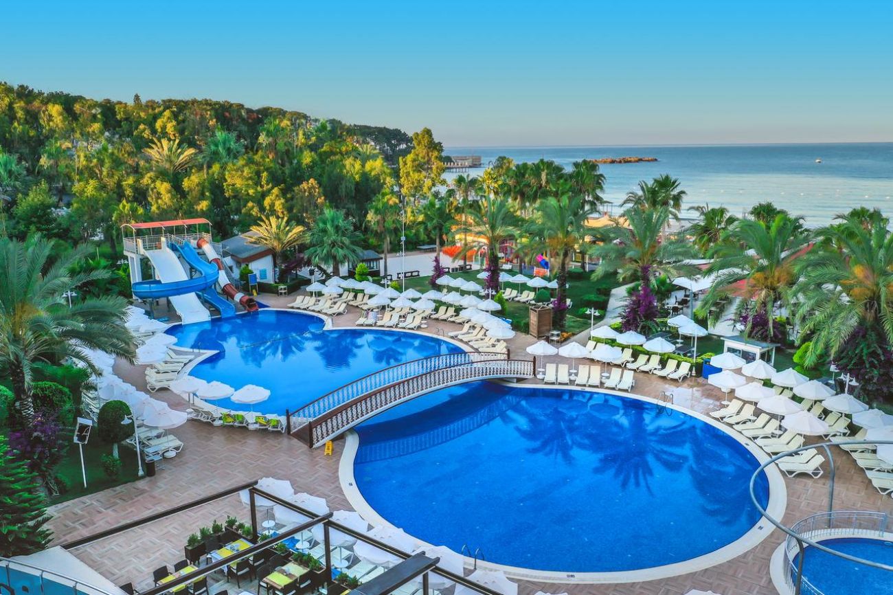 Основният корпус Hotel е построен в 2011 г., корпус Anex - през 1993 г., последно реновиран през 2011 г., обща площ 10 000 м2,. Състои се от 7-етажен основен корпус Hotel и един 7-етажен корпус, 155 standard room (макс. 2+2 чов., 32 м2)q 65 economy room (с изглед към градината или пътя, макс. 2+2 чов., 32 м2), Anex - 96 anex room (макс. 2+1 чов., 18 м2)., основен ресторант, 2 открити басейна, закрит басейн, 5 бара, лекар на повикване, фризьорски салон, магазини, пералня, 2 конферентни зали (за 100-400 чов.) БЕЗПЛАТНИ - турска баня, сауна, фитнес зала, аеробика, водна гимнастика, плажен волейбол, тенис на маса, дартс, тенис - корт с твърдо покритие, анимационни програми, билярд, дискотека (вход), безжичен Интернет (на лоби) ПЛАТЕНИ – масаж, джакузи, осветление на тенис-корта, наем на ракети и топки за тенис, водни видове спорт, интернет-кафе. Плаж - собствен, пясък. Бар на плажа - безплатно. На басейна и на плажа: чадъри, шезлонги, матраци – безплатно. Плажни кърпи :срещу депозит.