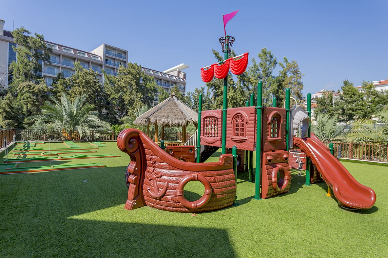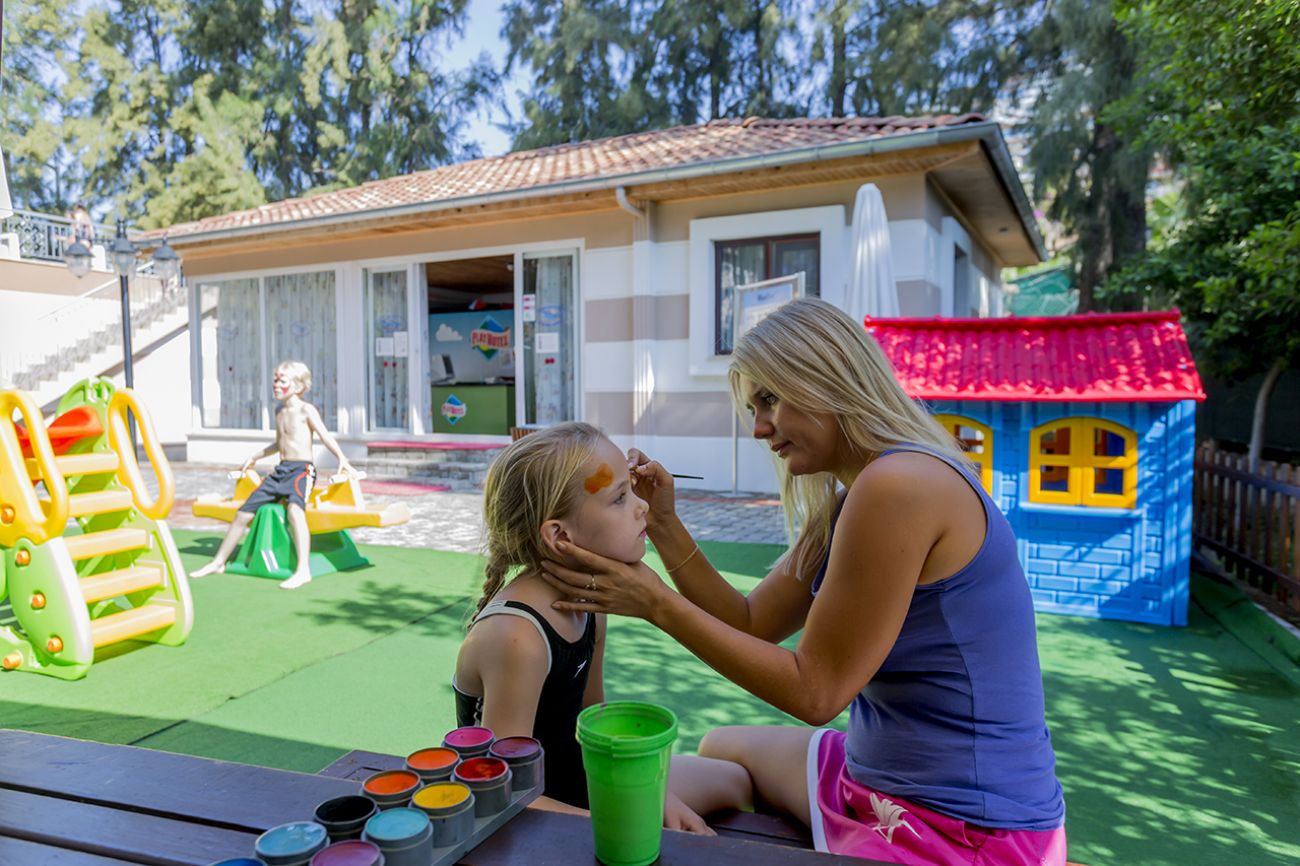 За децата: Детско меню, 2 детски басейна, 3 водни пързалки за деца, детска площадка, мини клуб (4-12 г), мини диско, детска анимация, детско столче, детска количка (под наем).