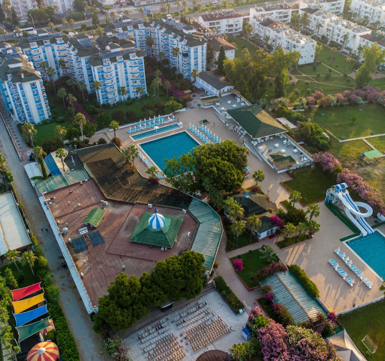 Намира се на 109 км от летище Анталия, на 119 км от Анталия, на 15 км от Алания, на брега на морето. Разположен на площ 30 000 м2. Построен през 1999 г.