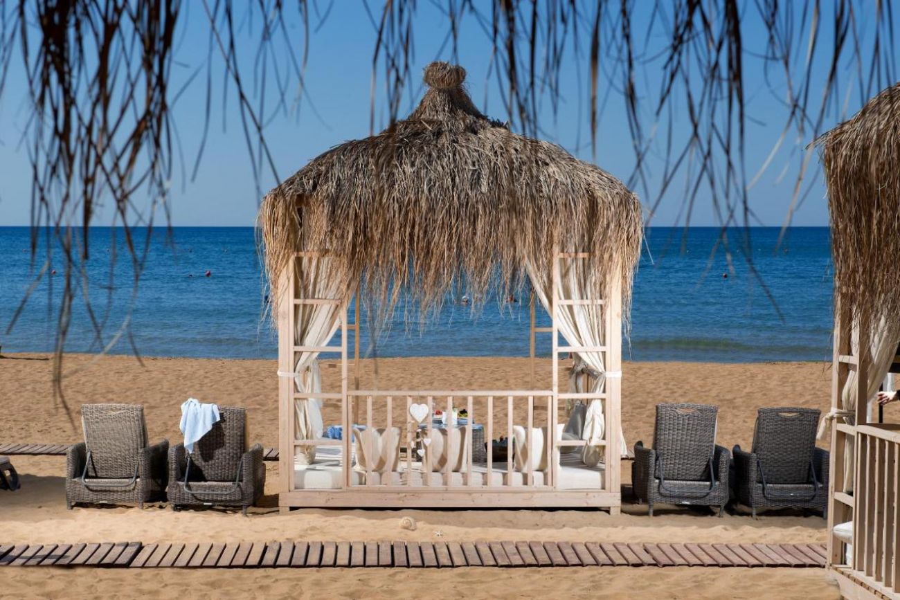 Собствен пясъчен плаж, 2 бара на плажа (единия е винен бар, работи от 03.05 до 31.10) безплатно. На басейна и на плажа: чадъри, шезлонги, матраци – безплатно. Плажни кърпи – безплатно.
