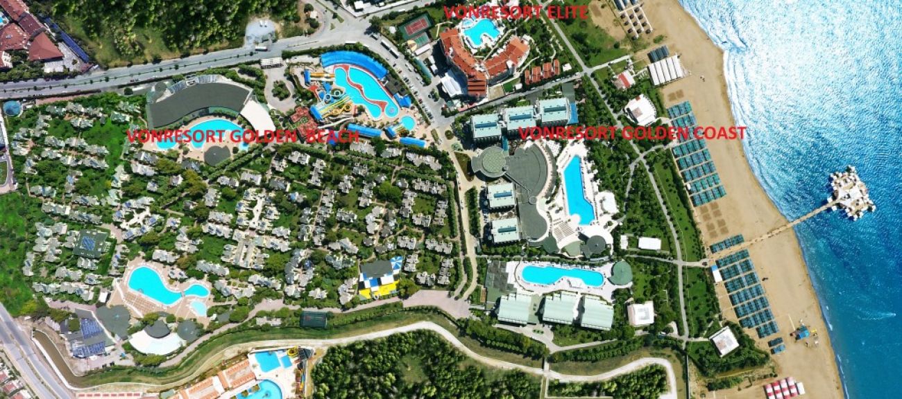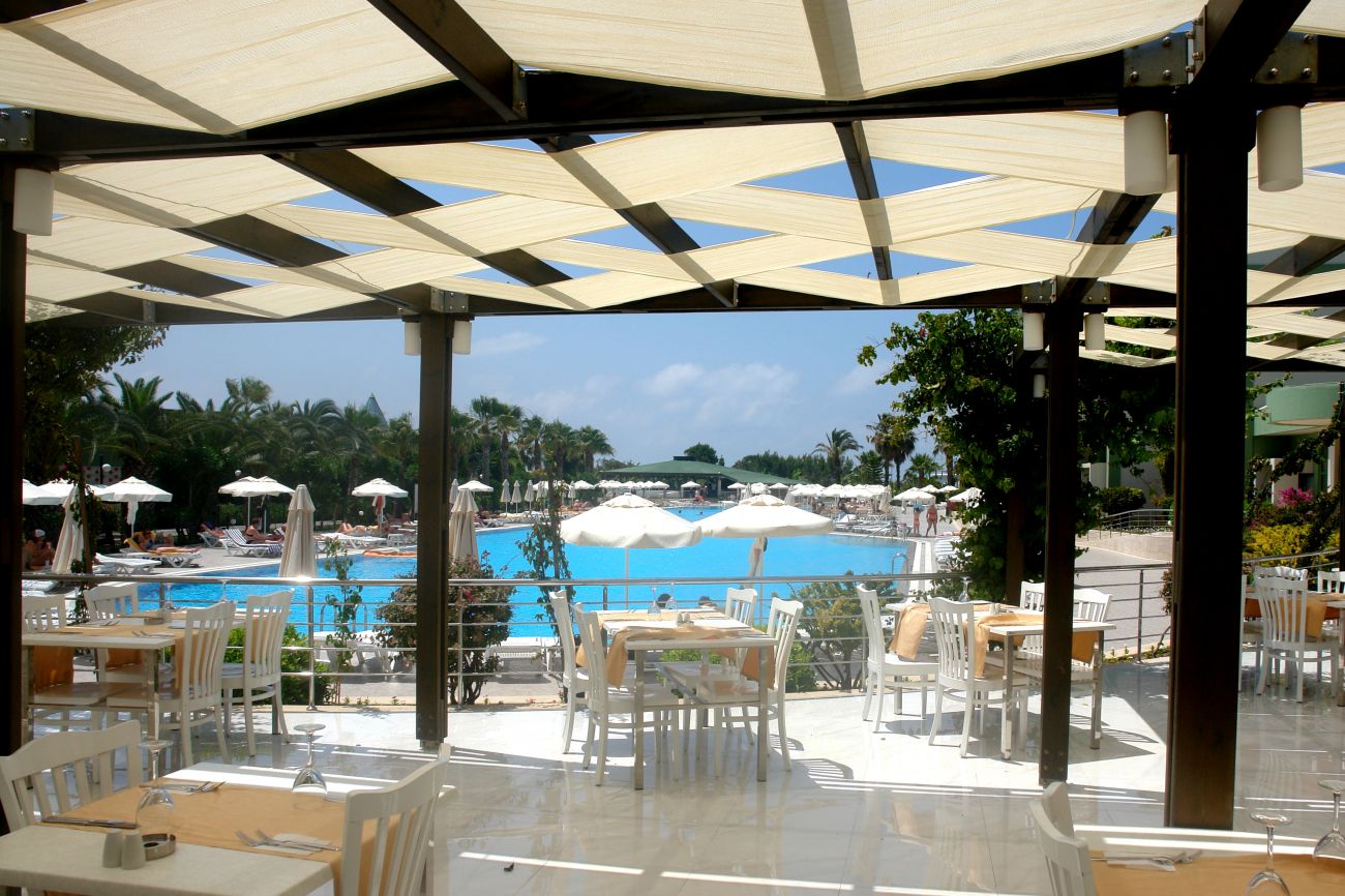 Основен ресторант, 7 а-ла-карт ресторанта (срещу заплащане), 6 бара, сладкарница, дискотека, открити и закрит басейн, аквапарк с 13 водни пързалки, Спа център, анимация, обмяна на валута, рент-а-кар. Безплатни услуги: фитнес, сауна, турска баня, плажен волейбол, баскетбол, гимнастика, аеробика, тенис на маса, дартс. Платени услуги: днакузи, център за красота, масажи, билярд, боулинг, интернет кафе, наем на велосипеди, безмоторни водни спортове, видео игри, химическо чистене. За децата: детски басейн, мини клуб, 4 водни пързалки.