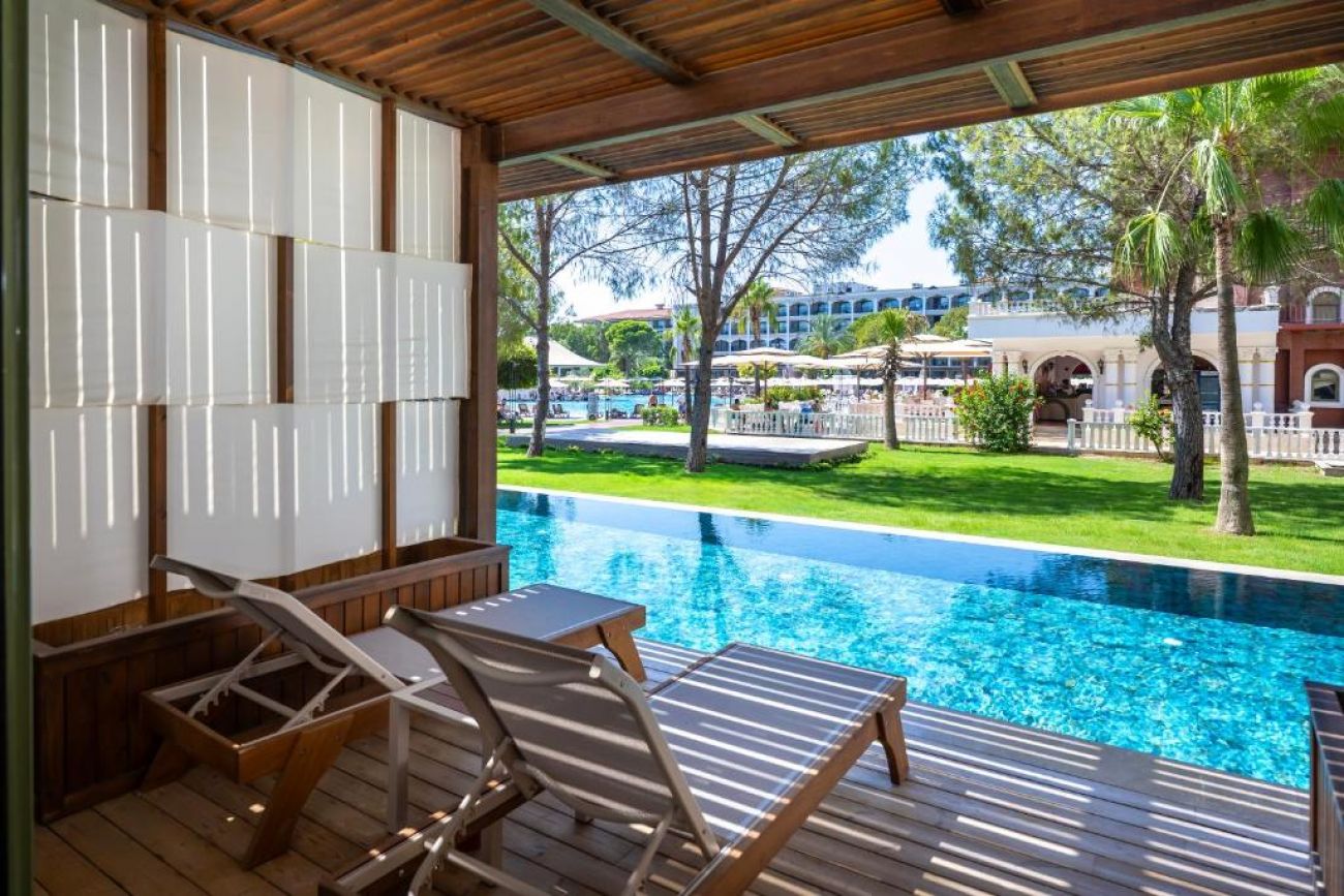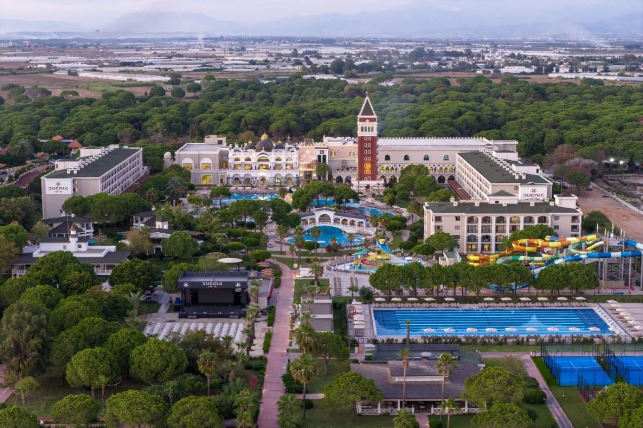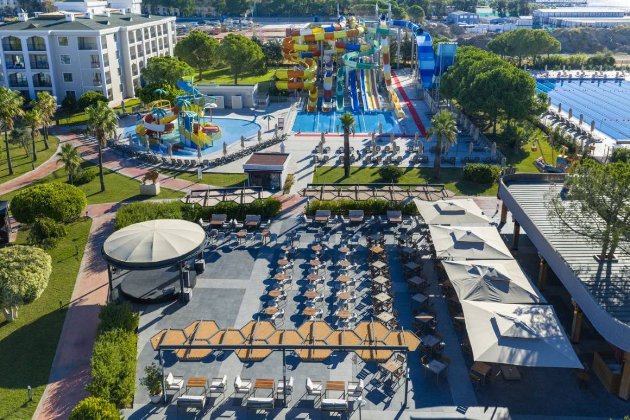 Намира се на 15 км от летище Анталия, на 20 км от центъра на Анталия, на 5 км от центъра на Лара, на брега на морето. Построен 2003г., на обща площ от 118 000 м2. Изцяло реновиран 2024-2025 г.