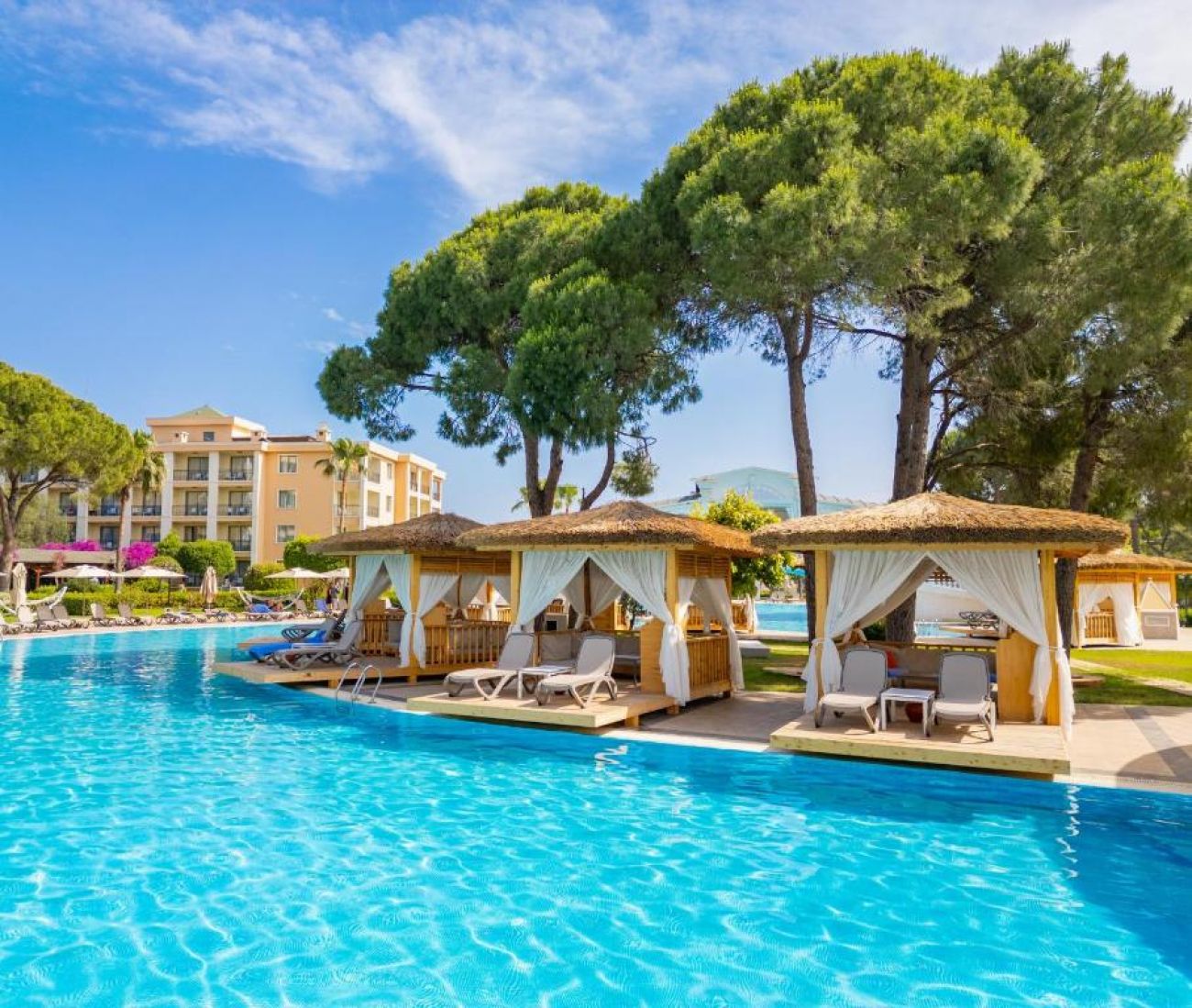 Основен ресторант, 4 а-ла-карт ресторанта – рибен, италиански, турски, стек (срещу заплащане, с предварителна резервация), 3 снек ресторанта, станция за бързо хранене, гьозлеме, 3 сладкарници, кафетерия, 7 бара, диско бар, 3 открити и 1 закрит (отопляем) басейн, аквапарк, СПА център, магазини, 2 конферентни зали, паркинг.