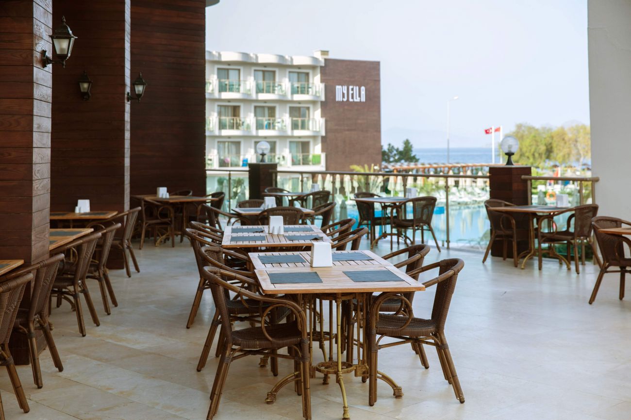 Oсновен ресторант Amber, 2 а-ла-карт ресторанта (Ella Culinarium Speciality и Ella Finoccio Speciality, предлагат италианска, медитеранска и турска кухня - 1 безплатно посещение с предварителна резервация), 4 бара - Sun Bar 10:00-18:00, Merienda Bar 10:00-18:00, Angel Bar 24/7, Vitamin Bar 10:30-18:00, дискотека, 2 открити басейна и 1 закрит басейн, СПА център, 24-часова рецепция, конферетни зали и магазин.