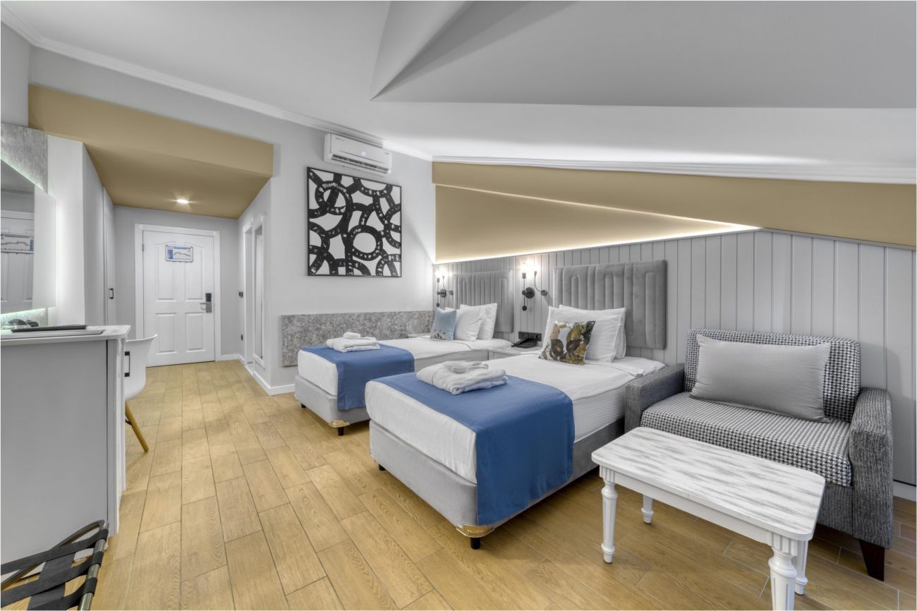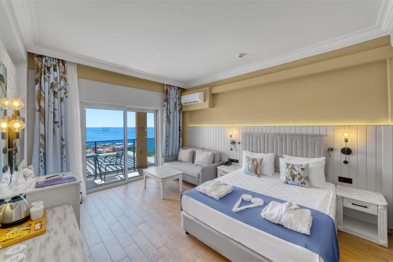 Хотелът се намира на на 120 км от летището на гр. Анталия, на 10 км от гр. Алания, на 3 км. от Конаклъ, на брега на морето. Изцяло реновиран за сезон 2024.
