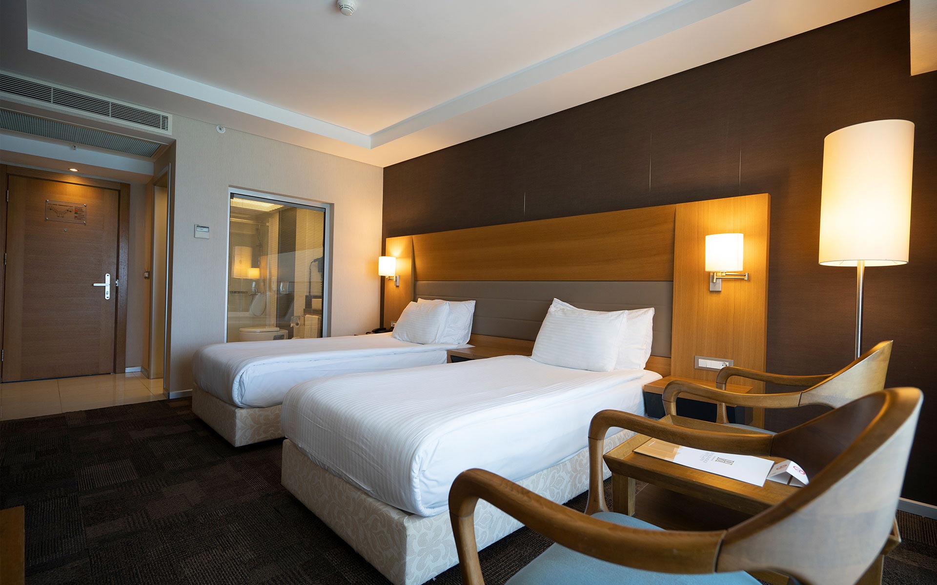 Хотелът разполага със 253 стаи, всички оборудвани с климатик, телевизор, телефон, баня с душ, сешоар, минибар /платен/, сейф, балкон. WiFi и безплатен частен паркинг са също на разположение.