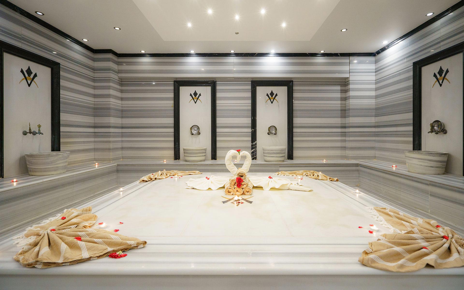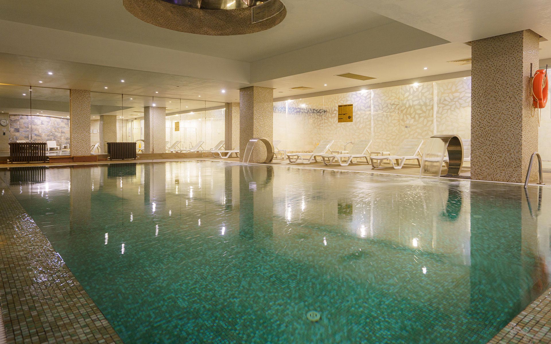 Основен ресторант, 2 бара, 3 открити (1 термален) и 2 закрити басейна (1 термален), конферетни зали, магазини, паркинг.