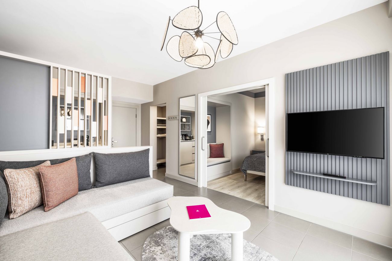 Хотелът разполага с 300 стаи – Deluxe Suite ( 40м2 + балкон 11м2 ), Deluxe Suite Sea View ( 40м2 + балкон 11м2 ), 2 Bedroom Deluxe Suite ( 46м2 + балкон 11м2 ), Deluxe Suite with Poolside Terrace (40м2 + балкон 14м2), Deluxe Suite Swim Up Adult Only +12 (40 м2 + балкон 40м2), Deluxe Suite with Relax Garden Terrace (40 м2 + балкон 40м2), Penthouse Suite with Jacuzzi Direct Sea and Ancient Theatre View (40м2 + балкон 30м2).