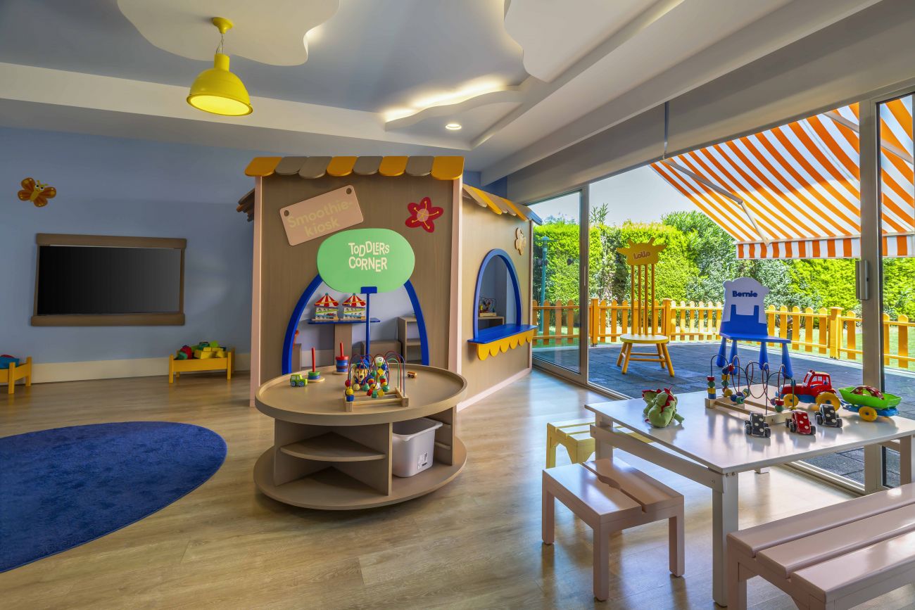 За децата: детски клуб, детски басейн, детско кино, детска площадка, специални бебешки услуги с предварителна заявка към хотела при резервация – количка, кошара, бебефон, детски столчета, нагревател за шишета, бебешка вана, кана за топла вода.