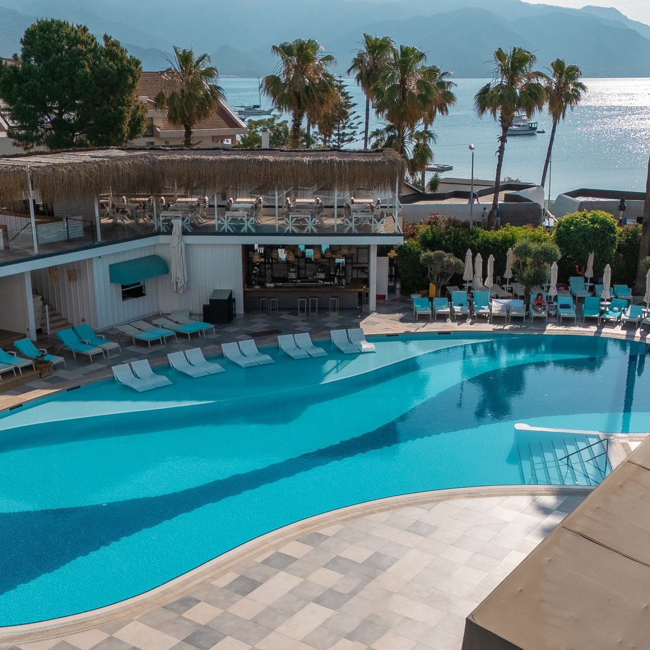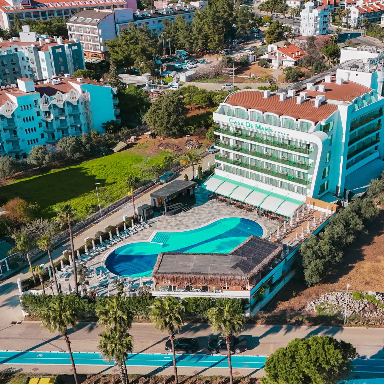 Намира се на 90 км от летище Даламан, на 120 км от летище Милас/Бодрум, на 3 км от центъра на Мармарис, на 10 м от морския бряг.