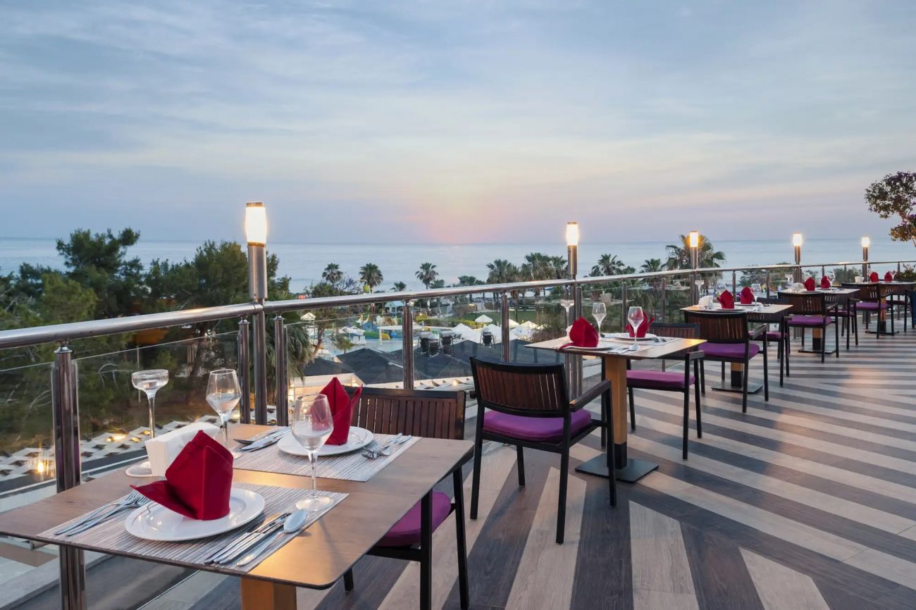 Основен ресторант, 3 а-ла-карт ресторанта (италиански, гръцки, барбекю - 1 безплатно посещение на 1 от ресторантите при минимум 7 нощувки, с предварителна резервация), 4 бара (1 от които 24-часа), 2 открити и 1 закрит басейн, 2 водни пързалки, СПА център, дискотека, магазини, конферентна зала, паркинг.