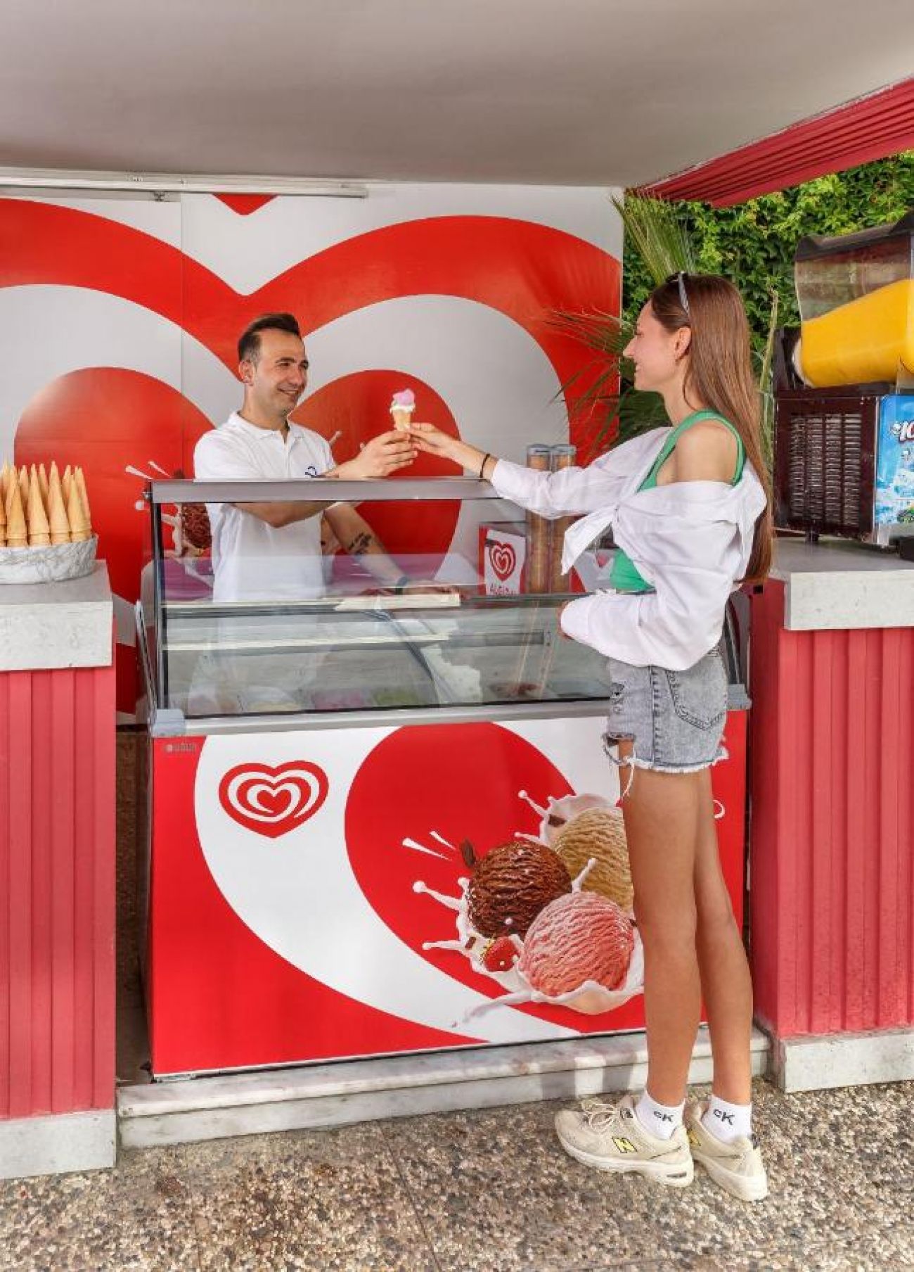 Основен ресторант, а-ла-карт ресторант (турски - 1 безплатно посещение при минимум 7 нощувки), сладкарница, снек ресторант, 3 бара, открит и закрит басейн, аквапарк с 5 водни пързалки, амфитеатър, СПА център, открита дискотека, магазини, паркинг.