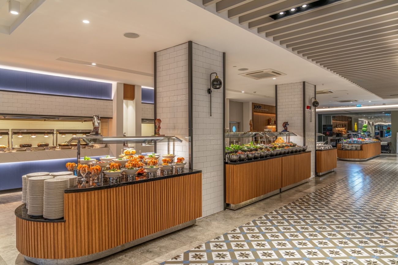 Основен ресторант, 2 а-ла-карт ресторанта (интернационален и рибен - срещу заплащане, с предварителна резервация), снек бар, гьозлеме, сладкарница, 4 бара, 2 открити басейна, 2 водни пързалки, СПА център, магазини, паркинг.