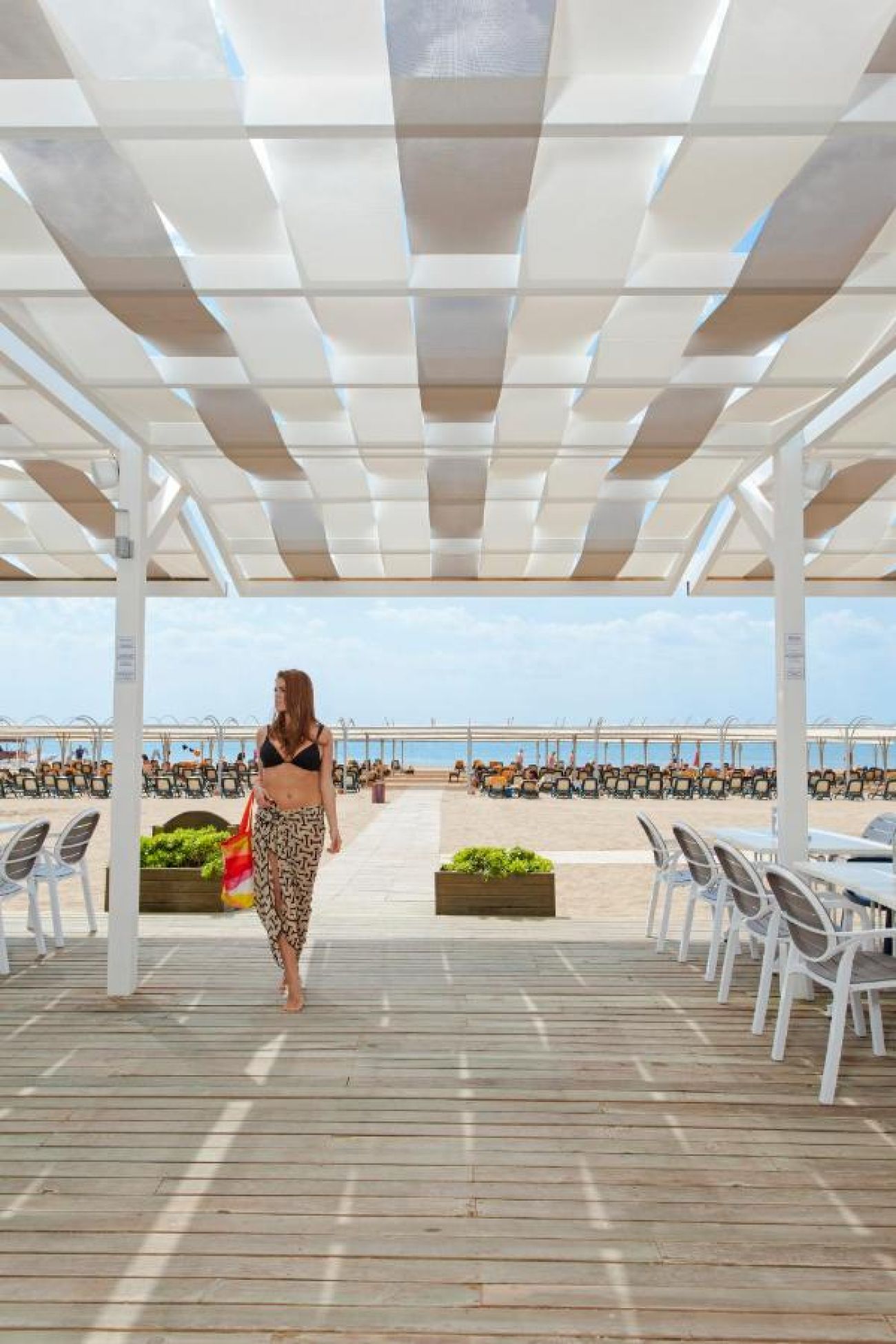 Собствен пясъчен плаж на 200 м, шезлонги, чадъри и плажни кърпи безплатни.