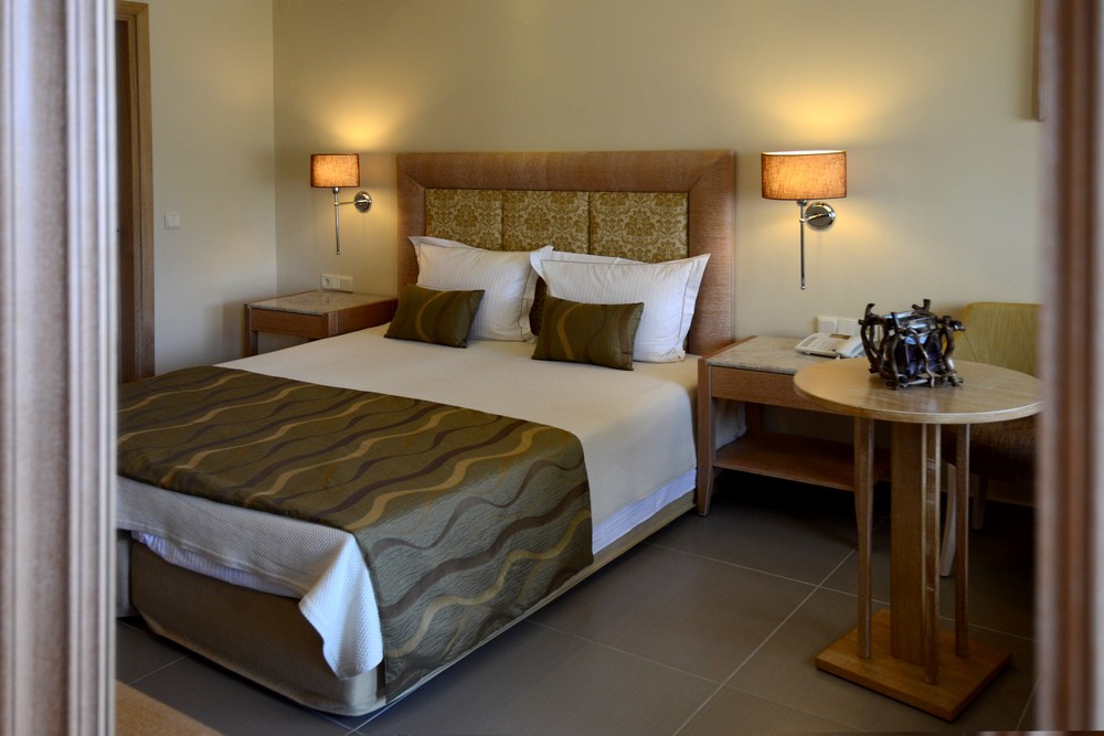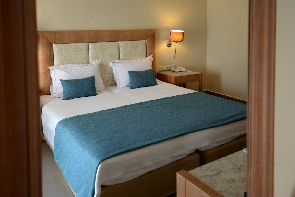 В стаите: стаите са модерно обзаведени и просторни. Размерът е 27-31 кв.м. Баните са с душ кабина, а от стаята може да се излезе на балкон/веранда, на които има маса и столчета. Стаите разполагат с мини бар, Wi-Fi, климатик, сешоар и сейф, телевизор с плосък екран.
